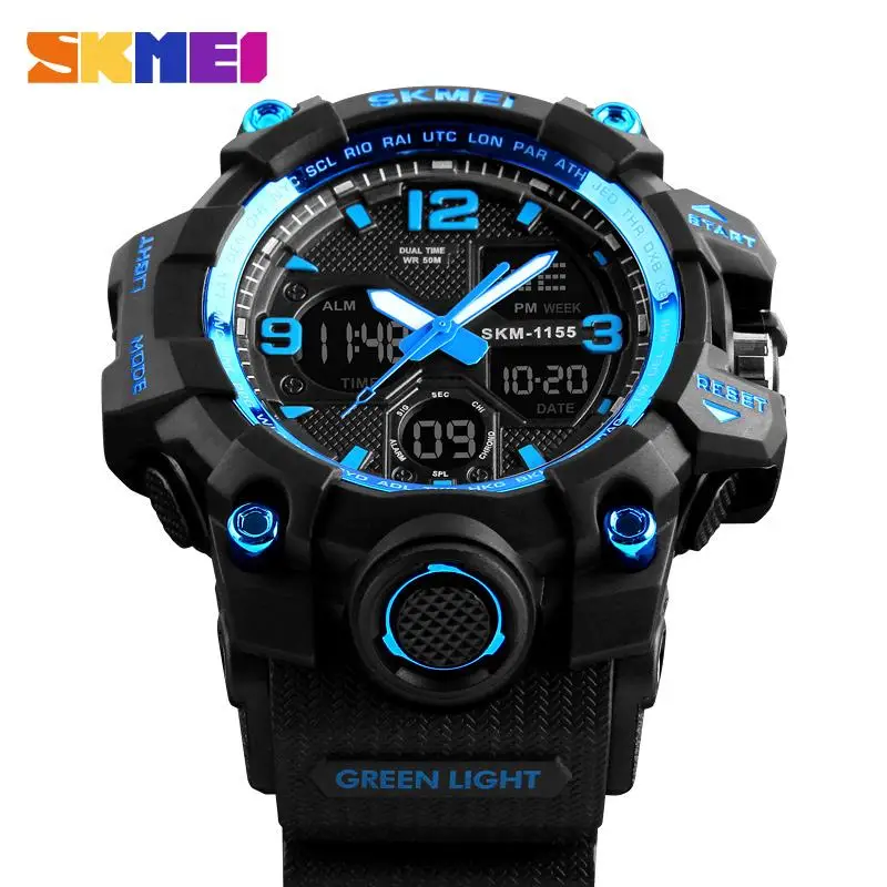 Часы наручные SKMEI Мужские Цифровые, Брендовые спортивные водонепроницаемые в стиле милитари, с двойным дисплеем, 5 бар, 1155B