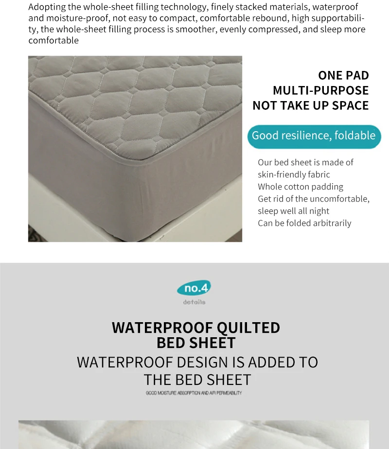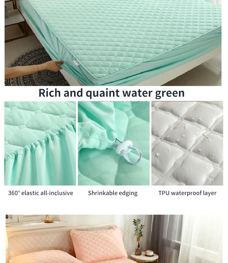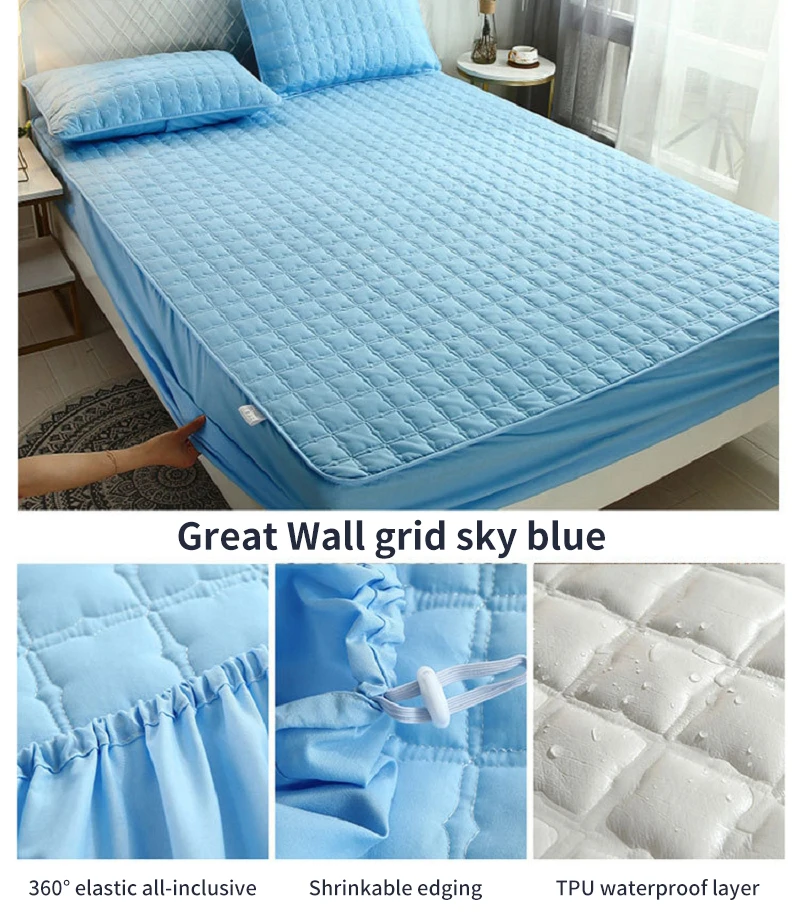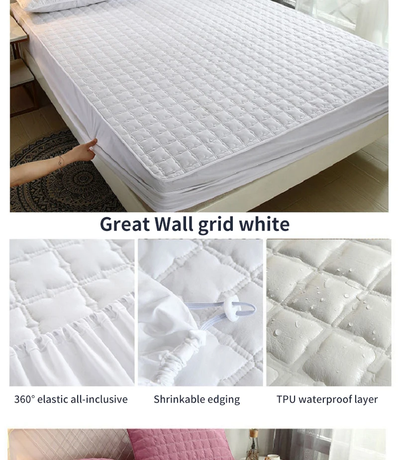[Название продукта]: водонепроницаемое покрывалоТолщина: 3 ~ 30 см толщина простыниВысота: подходит для матрасов длиной до 28 см[Размер]: как показано[Ткань]: спереди приятная для кожи ткань, Средний Стеганый слой, обратная водонепроницаемая ткань из ТПУ【Характеристики 】:1. Хлопковое стеганое шитье, пушистое и мягкое, тонкая проводка.2,360 ° Полный посылка3. Машинная стирка и стирка в воде