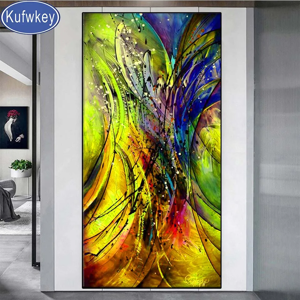 Большая алмазная живопись, полноразмерная круглая 5d абстрактная Красочная 3D вышивка крестиком Стразы 5d, мозаика для творчества, красочное искусство