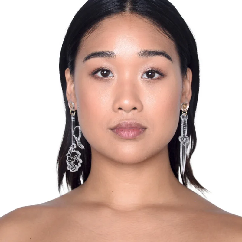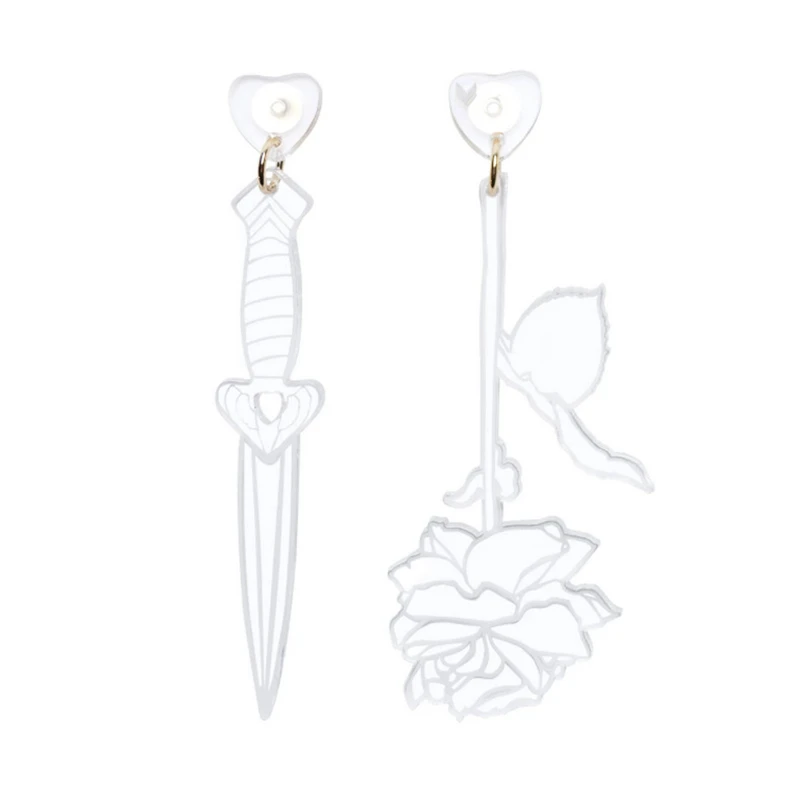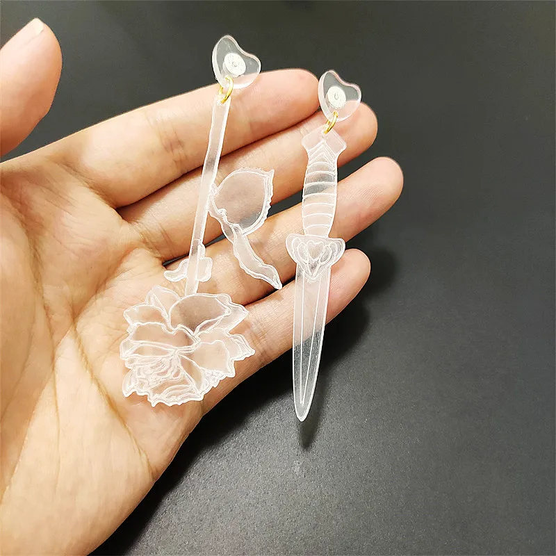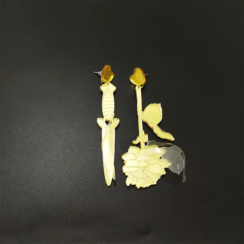 Новые асимметричные серьги-капли с розовым мечом для женщин, прозрачные золотые акриловые гиперболы, модные ювелирные изделия в стиле панк-рок, классные аксессуары