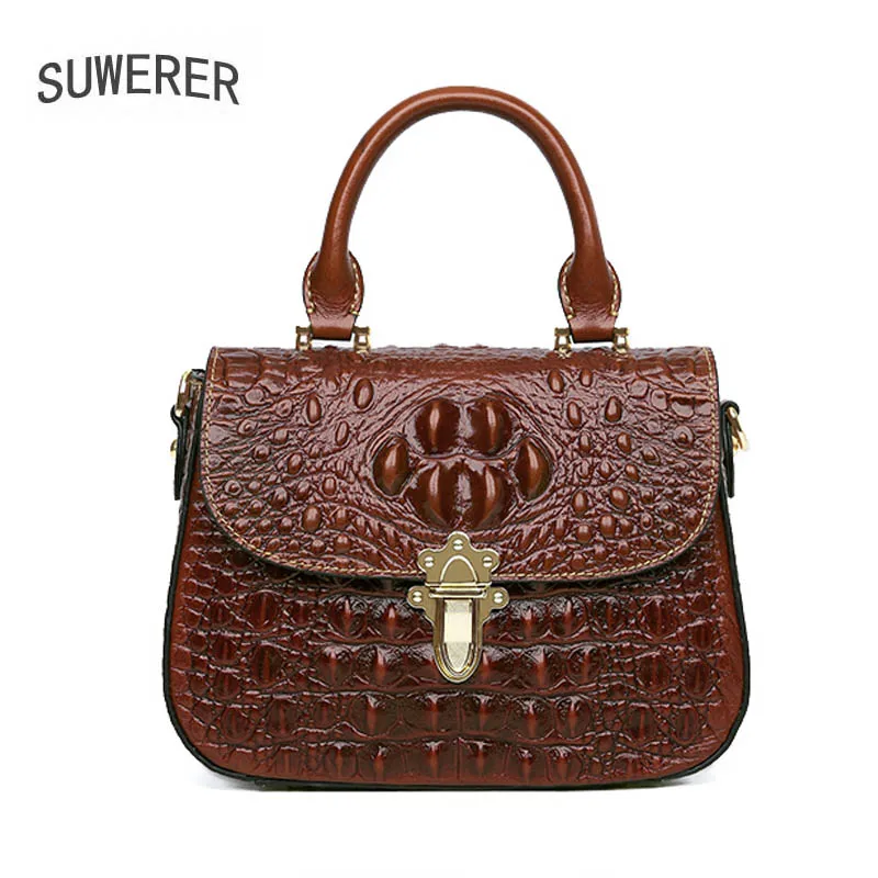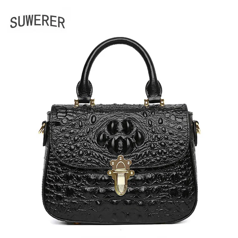 Сумка женская из натуральной воловьей кожи, с крокодиловым узором, Высококачественная сумка-торба