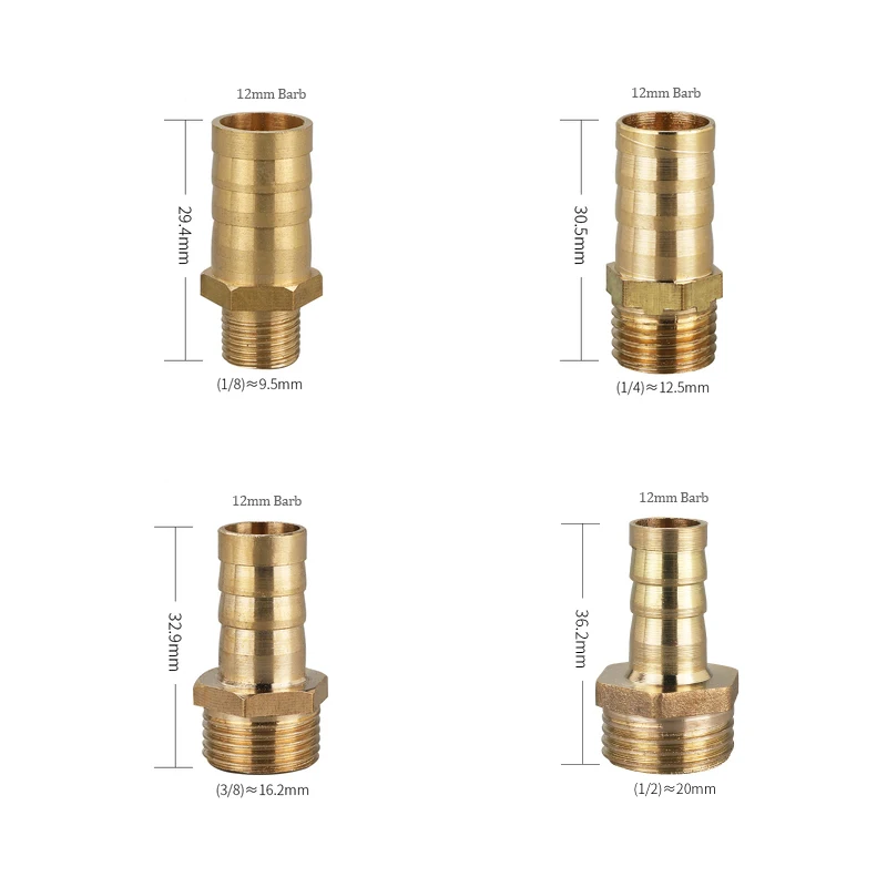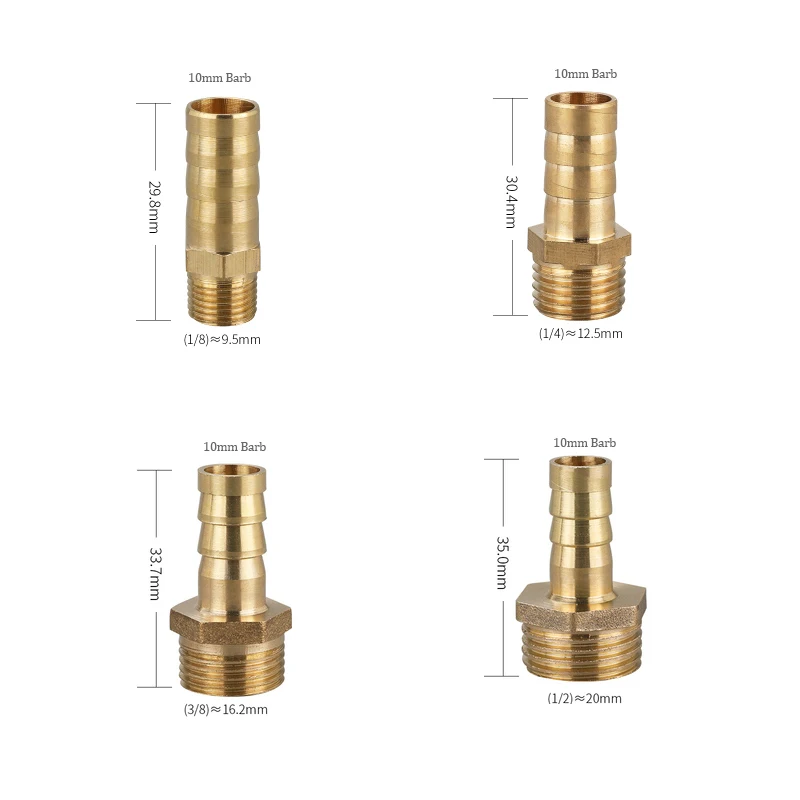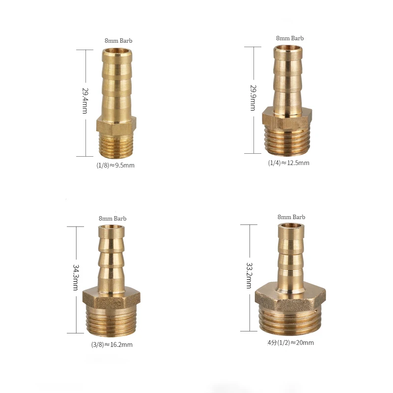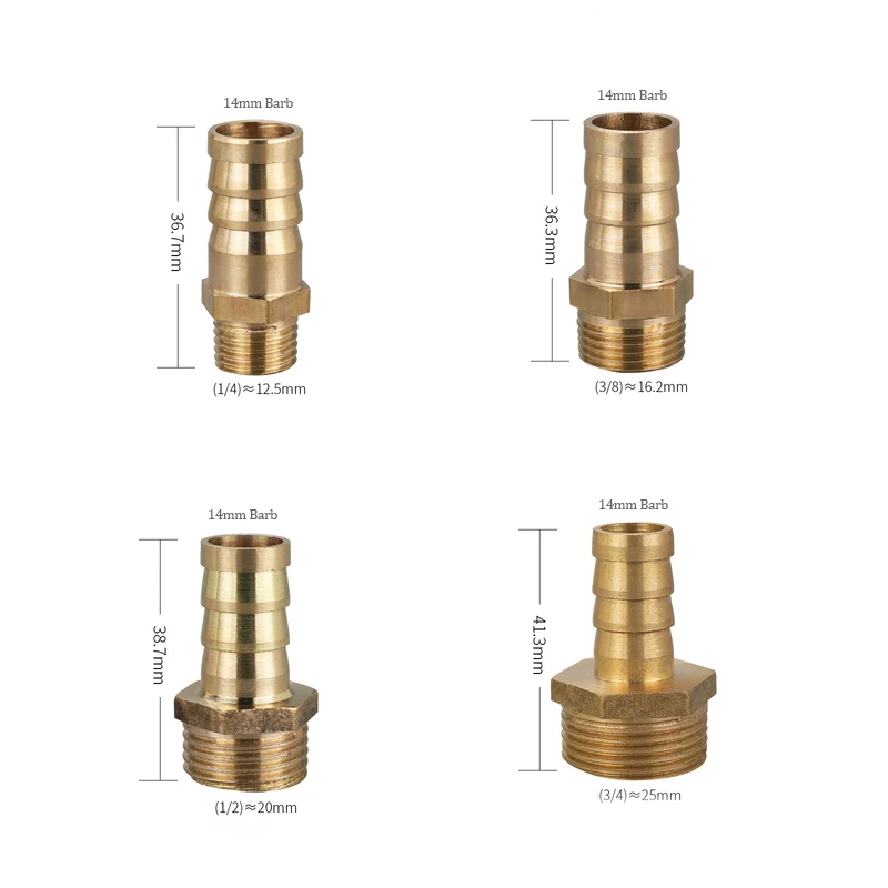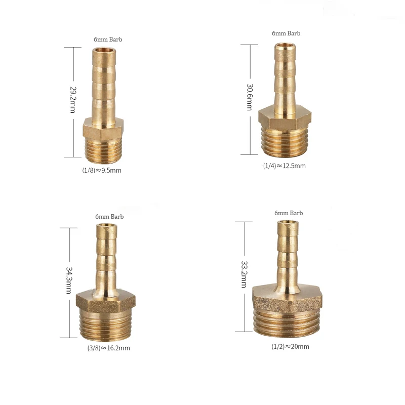 Латунный фитинг для труб 4 мм, 6 мм, 8 мм, 10 мм, 12 мм, 19 мм, Хвостовик с зазубринами для шланга 18 дюйма, 14 дюйма, 12 дюйма, 38 дюйма, дюйма, Штекерный соединитель BSP, медный переходник