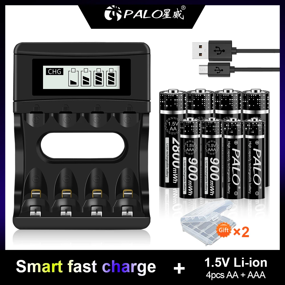 Литий-ионная аккумуляторная батарея PALO 1,5 в AA 1,5 МВтчв AAA МВтч литиевая аккумуляторная батарея с интеллектуальным зарядным устройством и ЖК-дисплеем