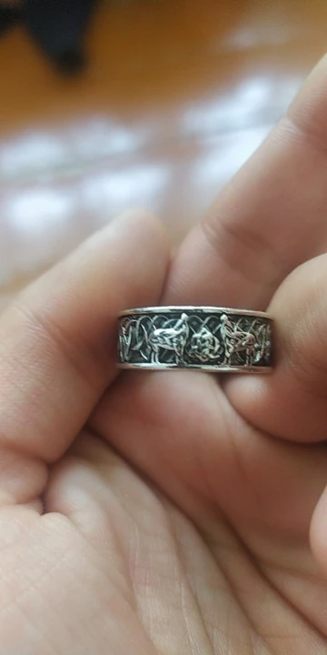 Изображение не выглядит как настоящий продукт. Рисунок на кольце небрежный, и детали не так ясны. Изображения на кольце также намного меньше, чем показано на картинке.