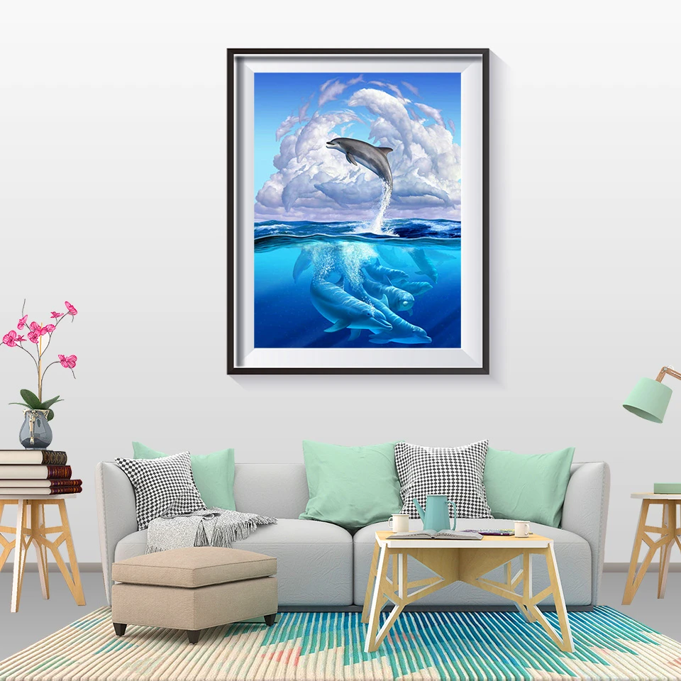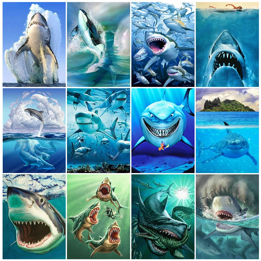Алмазная 5D Вышивка EverShine, Набор для творчества сделай сам с квадратными стразами в виде акулы стразы, вышивка крестиком с животными, набор для мозаики