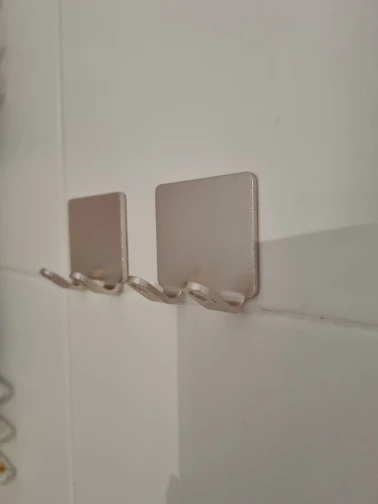 Хорошо работает, стикер 3M хорошо удерживает крючок на плитке в ванной комнате.