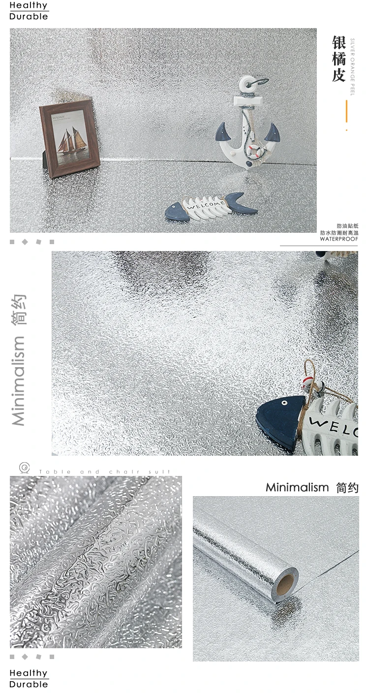Маслостойкие самоклеящиеся обои для кухни, 40 см, водостойкие, из алюминиевой фольги, настенные наклейки, противообрастающие обои для шкафа