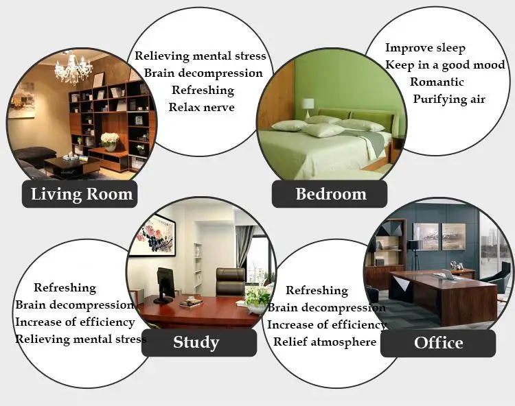 Аромат: яблоко, роза, лилия, сандаловое дерево, лаванда, жасмин, зеленый чай, океан, мыс жасмин, индийский Ладан, пион, полынь, амбергрис, магнолия, лимон, османтус, лотос, сакура, смешанный