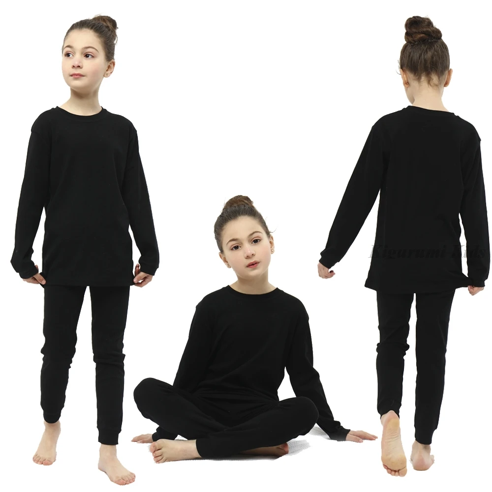 Зимние Детские пижамы для детей 2, 4, 6, 8 лет, детский пижамный комплект для девочек, пижама, милая мультяшная однотонная одежда для сна, 100% хлопок, желтая, синяя, детской