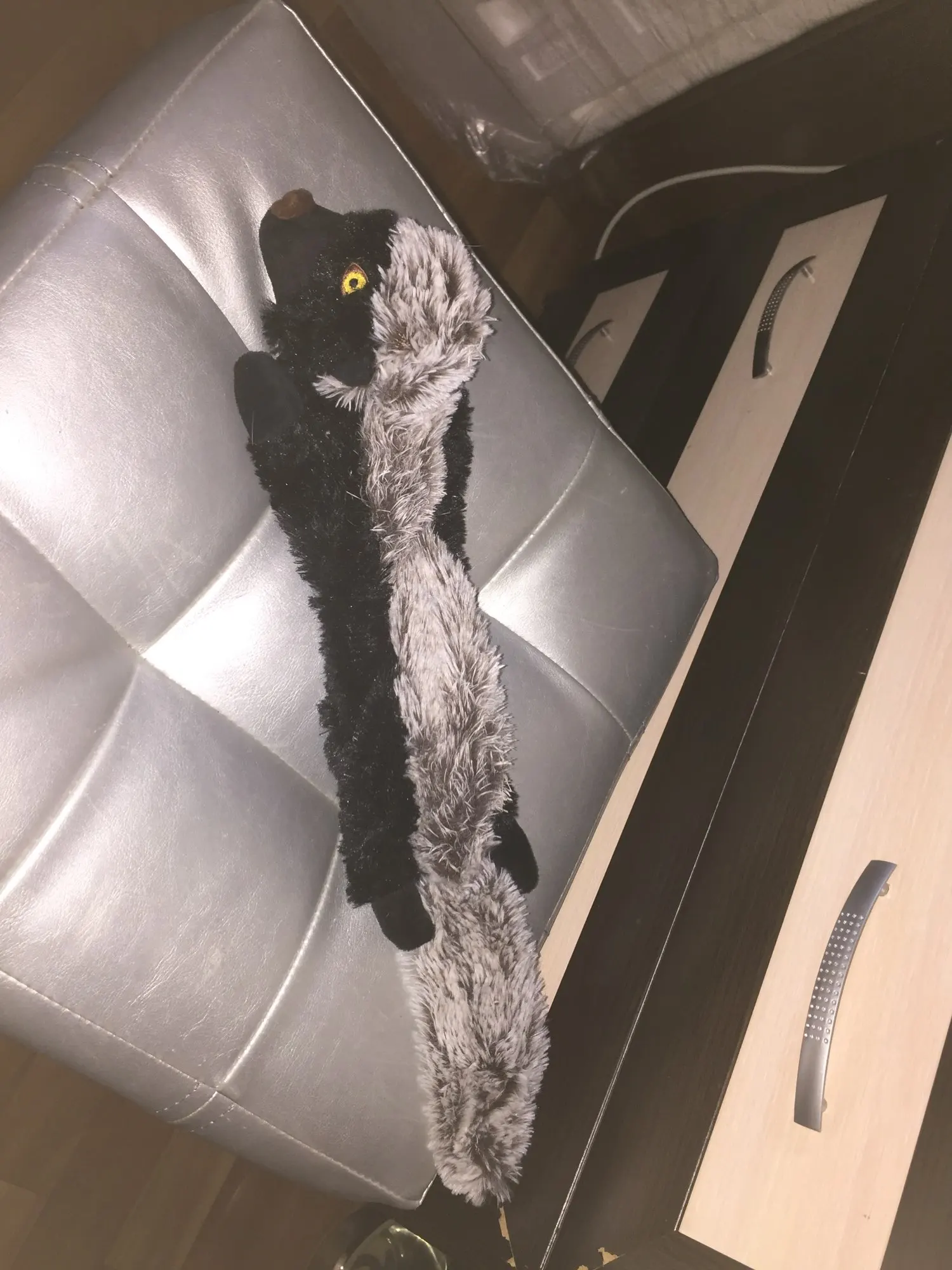 Игрушка идеальна.Качество очень хорошее!Собака(чихуахуа) в восторге))Запаха нет,швы прочные,мех не вылезает.Внутри спрятаны две пищалки,одна у хвоста,вторая в голове игрушки.Доставка была быстрой.Продавцу большое спасибо.Товар рекомендую для собак мелких и средних пород,по длине идеально.5+