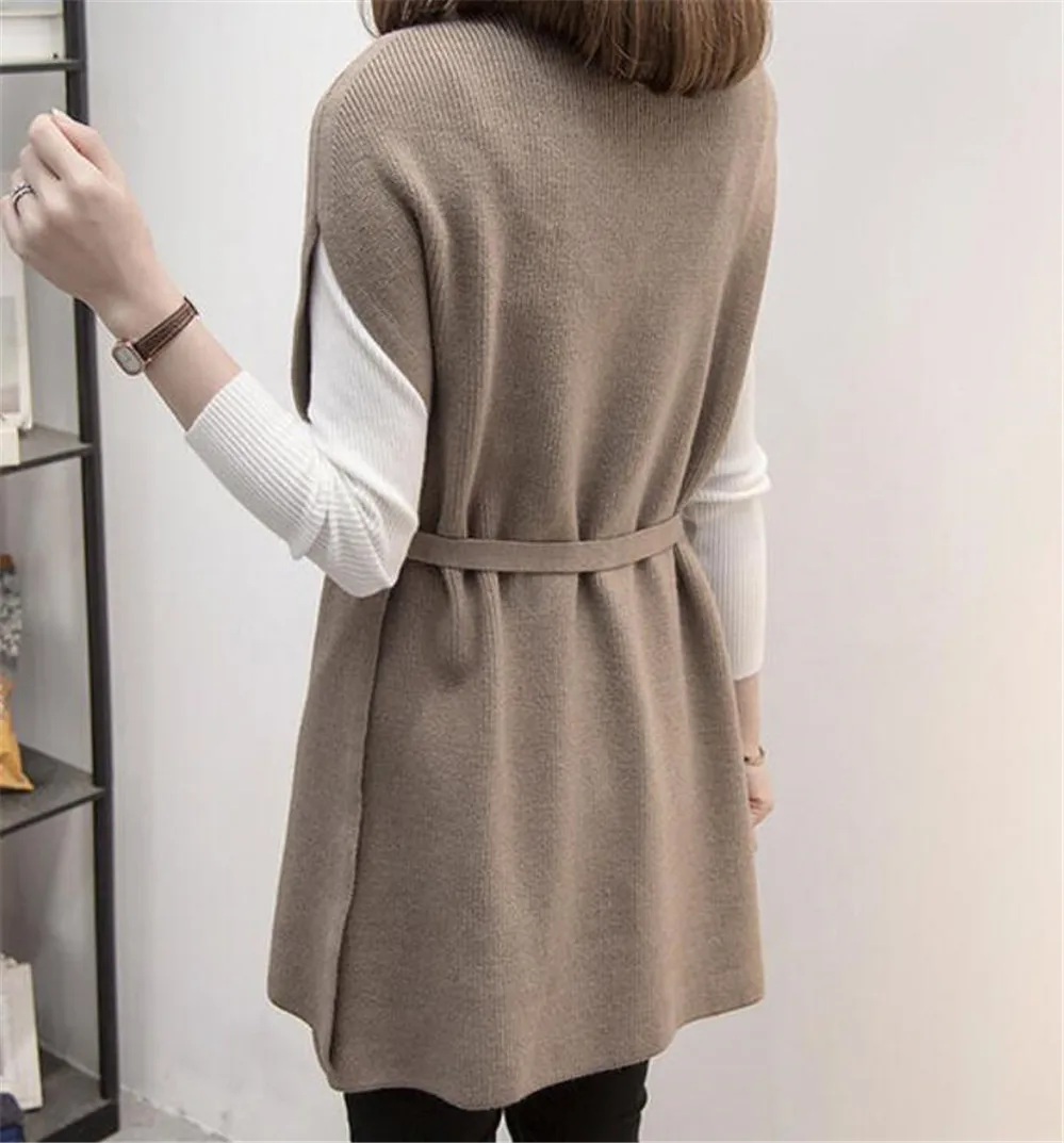 Длинный свитер, жилет, жилет с поясом, Свободный пуловер большого р...