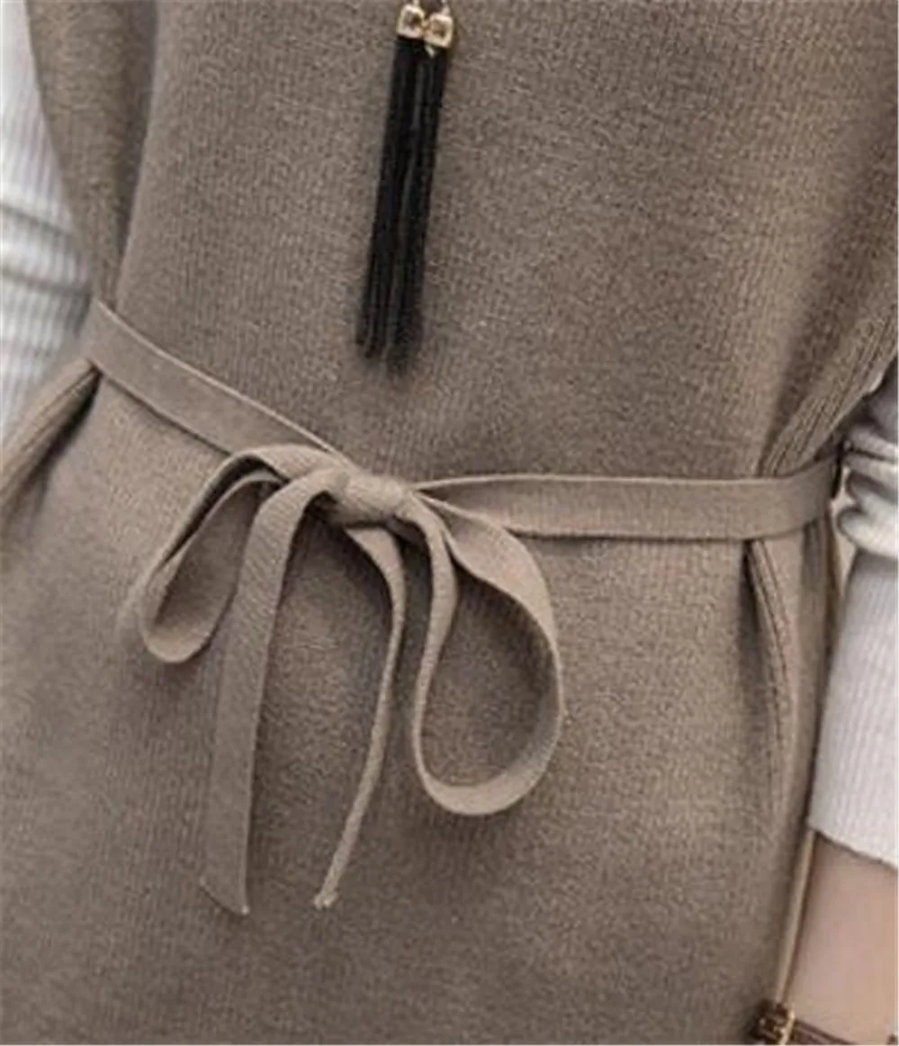 Женский вязаный свитер без рукавов, Приталенный жилет с поясом, пул...