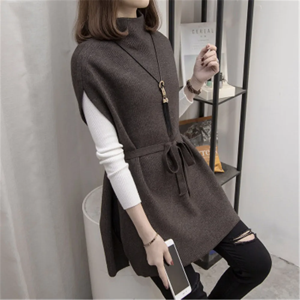 Модная новинка 2021, женская одежда в Корейском стиле на осень и зиму, Женский Длинный жилет, вязаный свитер средней длины с высоким воротником