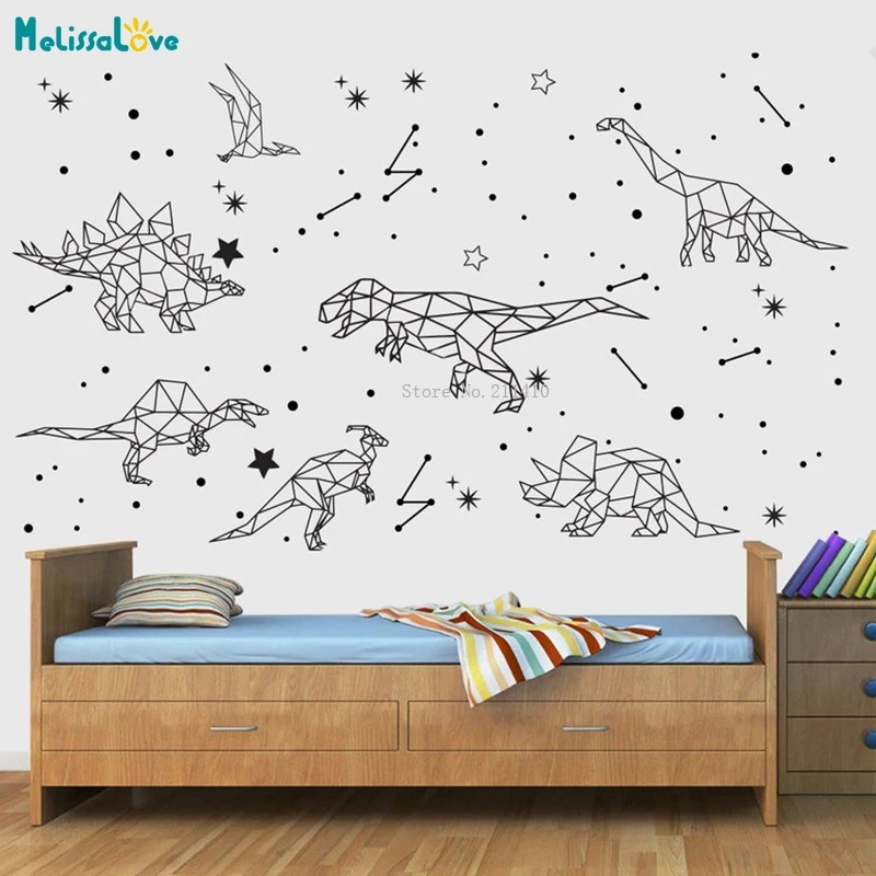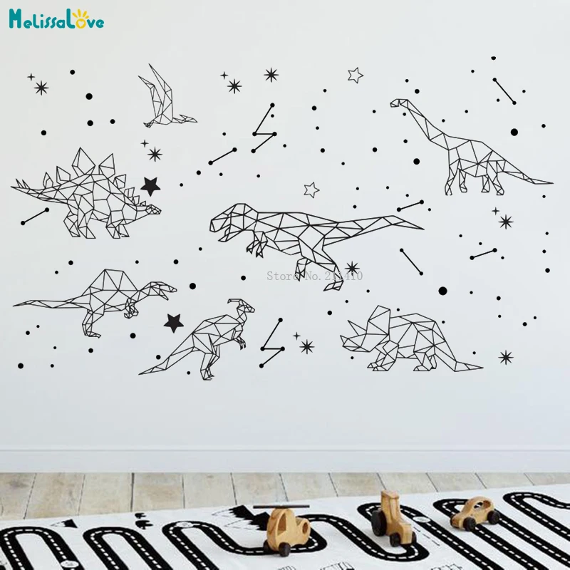 Геометрические наклейки на стену в виде динозавра, многоугольные, Т-Рекс, созвездия, звезды, самодельные наклейки, Съемные Фрески, виниловые наклейки YT5555