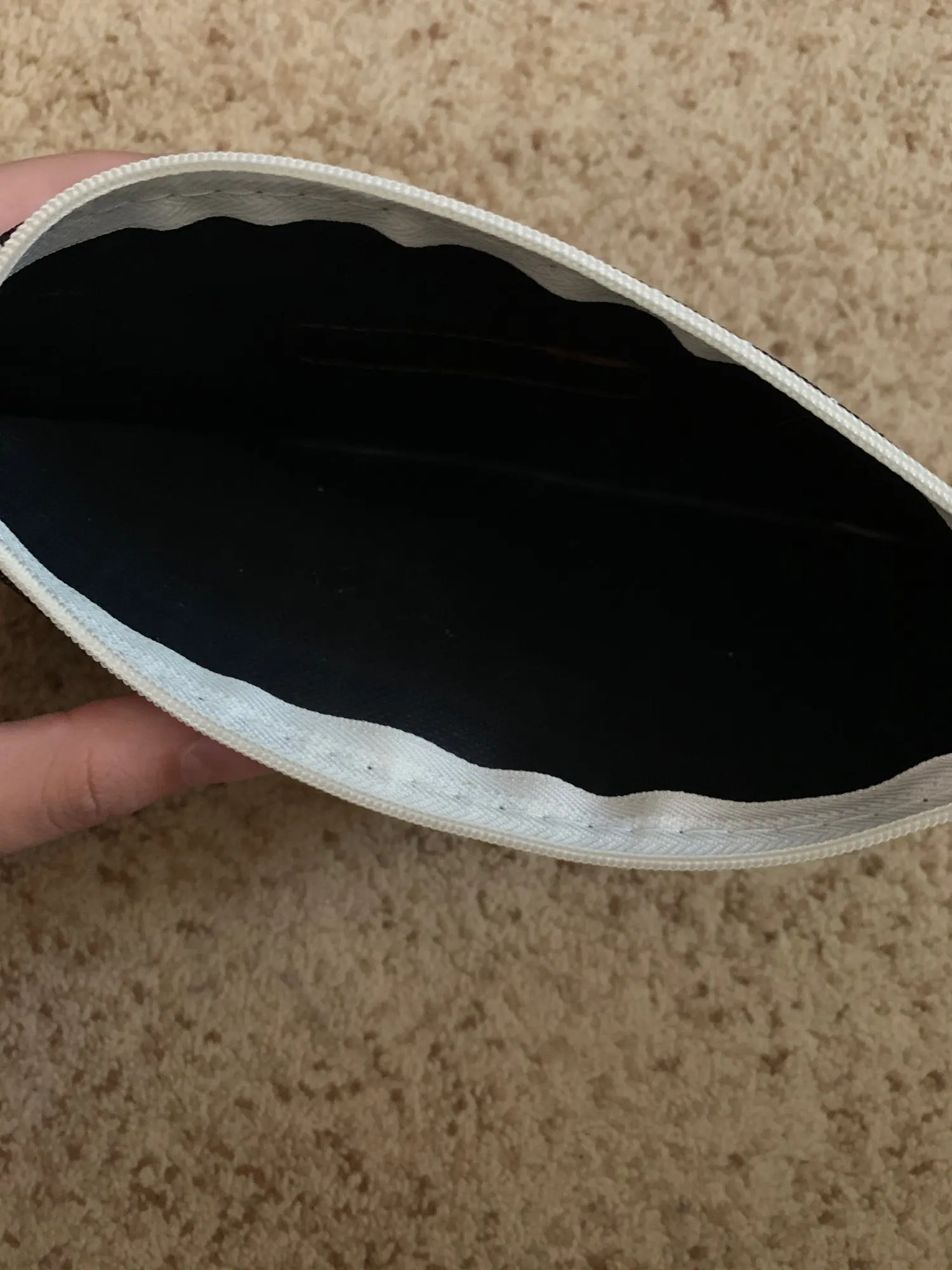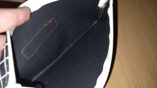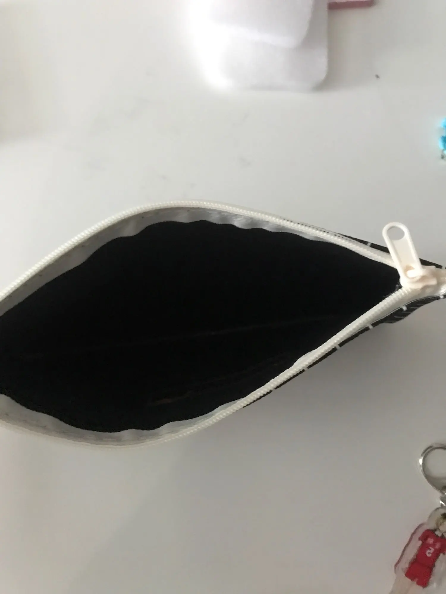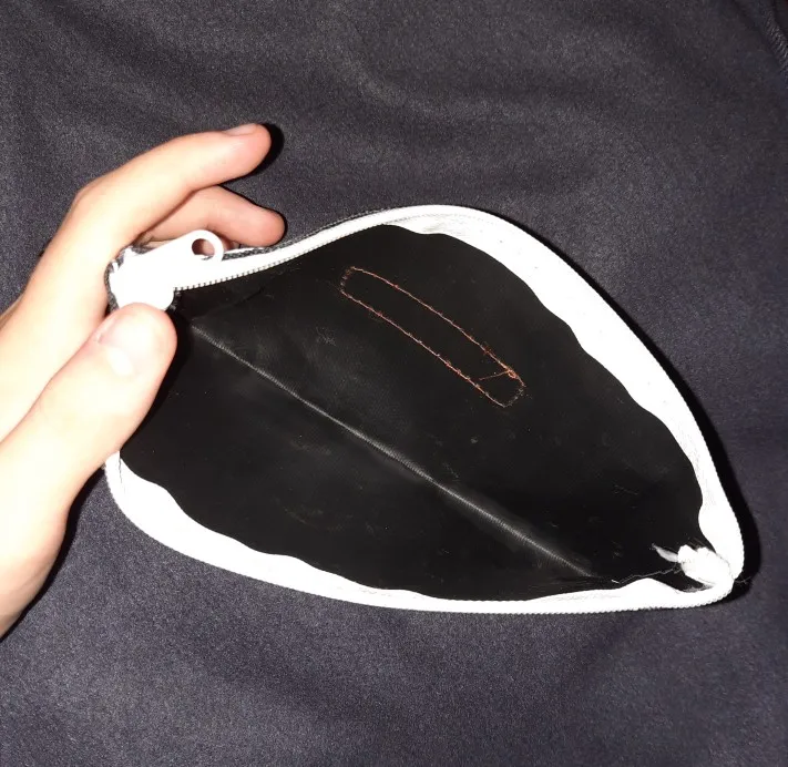 пенал не плохой, нитки не торчат, в нутри черный типо кожаный, снизила звезду из-за запаха, очень пахнет какой-то резиной, также снизила из-за того что молния пластиковая