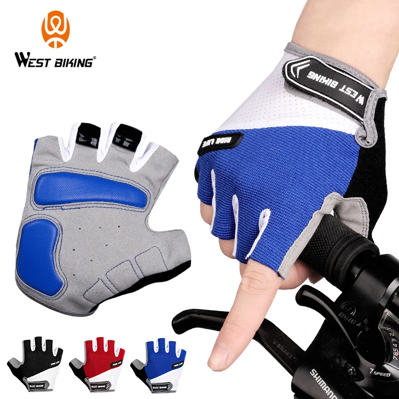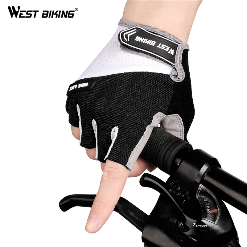 WEST BIKING из дышащего материала, велосипедные перчатки с обрезанными пальцами Нескользящие Pad MTB дорожный велосипед перчатки Для мужчин Для женщин Для мужчин перчатки для езды на спортивном велосипеде