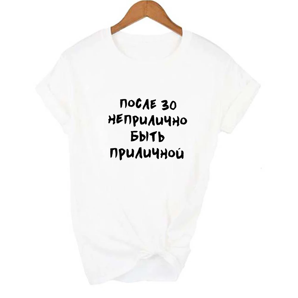 Модная женская футболка с принт в виде русских букв забавными футбо...