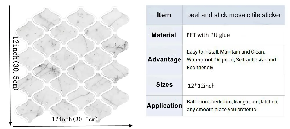 Очищенная и липкая плитка может использоваться на гладких, чистых, сухих поверхностях, таких как окрашенная гипсокартон или даже керамическая плитка. Просто очистите и приклейте, легко установить. Все, что вам нужно, это линейка, карандаш, ткань, И ножницы. Этот проект сэкономит вам время и деньги по сравнению с фактической плиткой. И нет никаких проблем, что плитка не будет соответствовать размеру Вашей стены, так как ее легко резать.