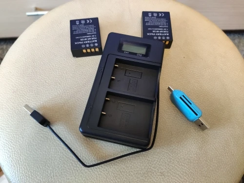 В подарок положили кард ридер. Зарядник интересный - умеет показывать текущий уровень аккумов без подключения к сети. Кроме штатного usb-кабеля есть две дырки - microusb и type-c, что дает возможность подключать девайс к обычной телефонной зарядке.