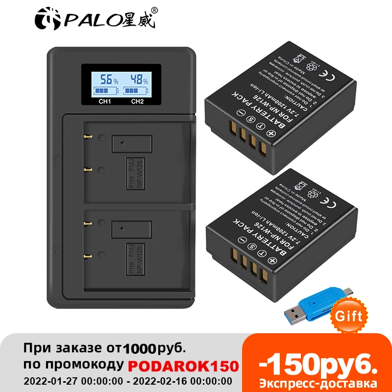 Аккумуляторы PALO NP W126 NPW126 W126S NP-W126 + зарядное устройство с ЖК-дисплеем, для Fujifilm Fuji X100F XPRO1 X-A1 HS50EXR XT1 X-T2