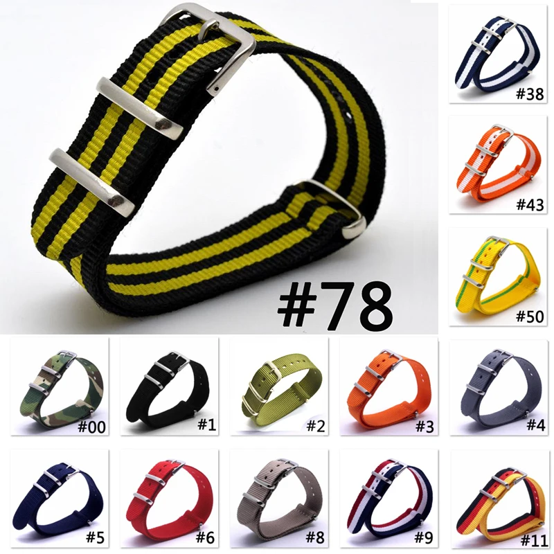 10 шт. НАТО нейлоновый ремешок для наручных часов 16/ 18/ 20 мм/22 мм/24 мм красочные тканые ткани ремень заменой DW часы ремешок серебристый пряжки ремня
