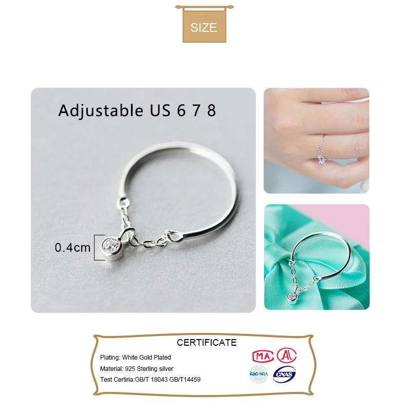 TrustDavis Настоящее серебро 925 пробы модное милое CZ цепь кольцо ...