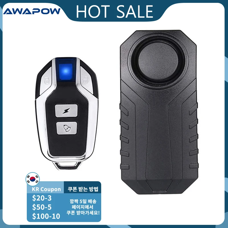 Awapow Беспроводная сигнализация против кражи для мотоцикла и велосипеда с дистанционным управлением, водонепроницаемая сигнализация для велосипеда, датчик вибрации 113dB, громкий