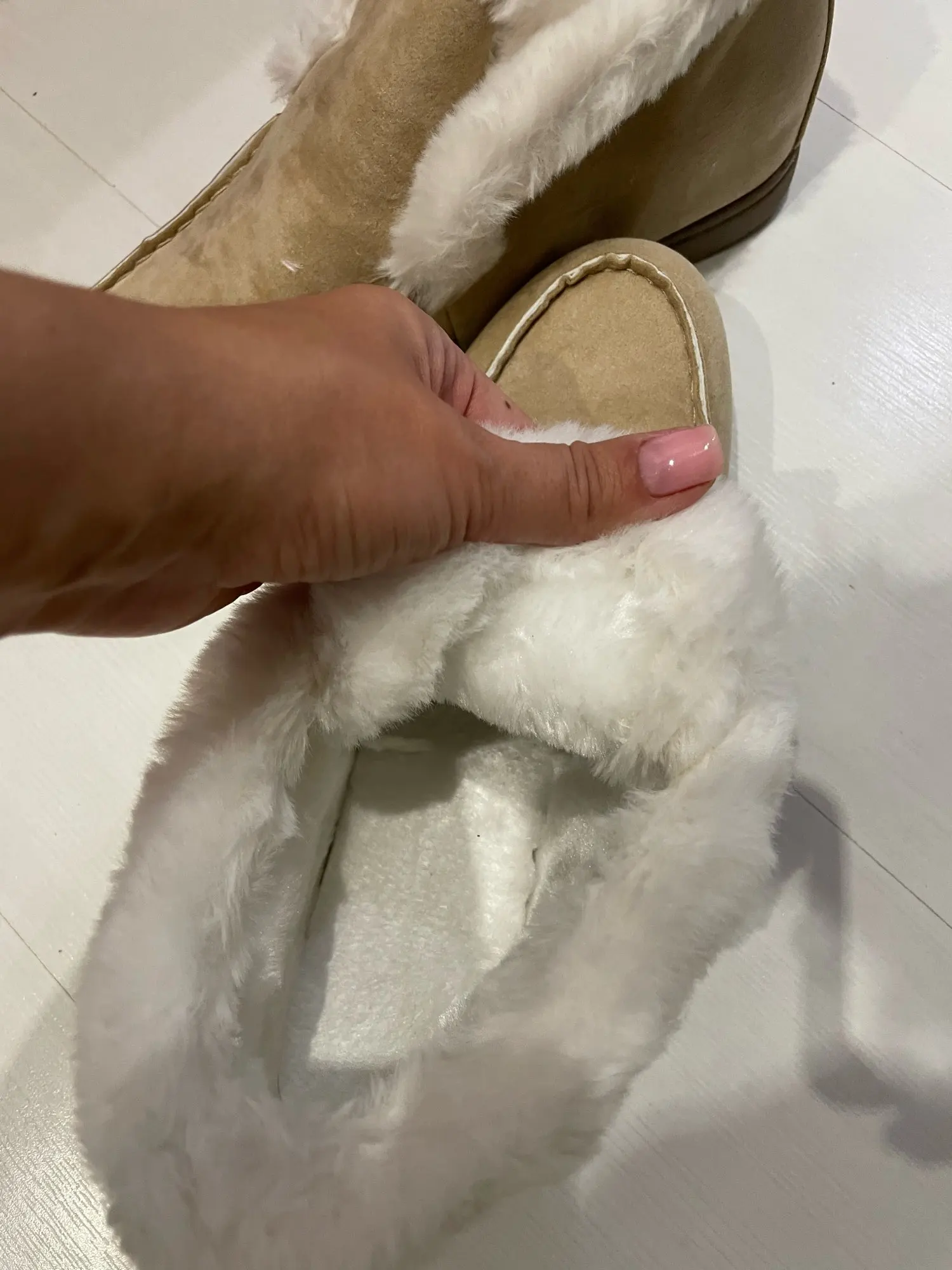 Не уверена насчёт натуральности меха. Но мне нужны были тёплые ботинки без шнурков. Размер правильный. От влаги протекают. На сухую холодную погоду. Выглядят прилично.