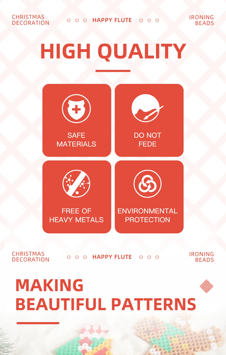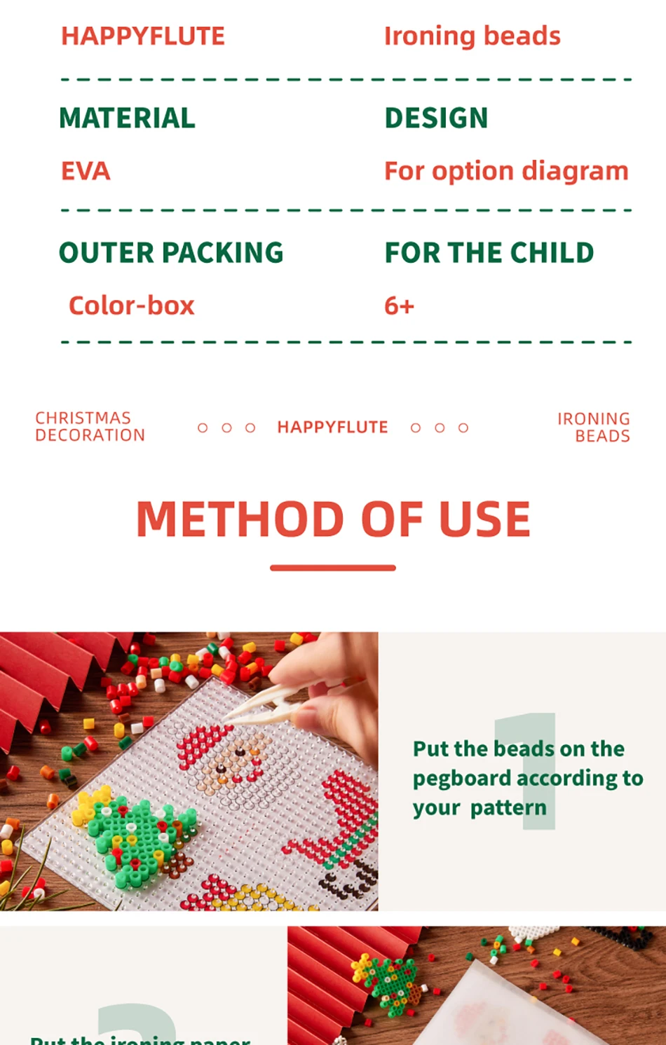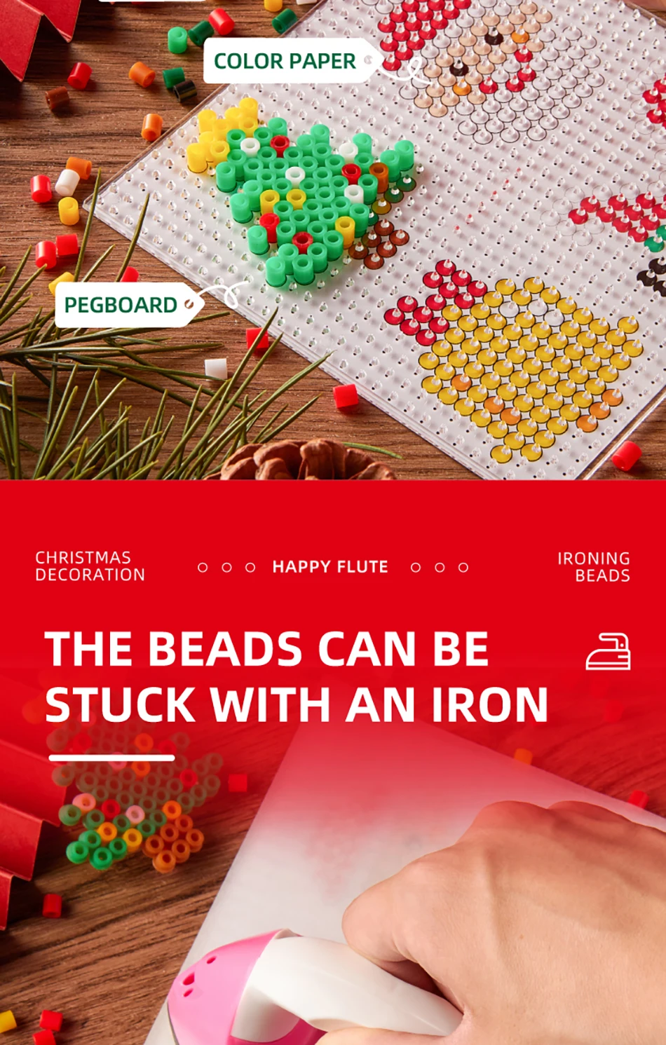 Счастливый Флейта рождественские украшения Гладильные бусины для больших детей большое удовольствие DIY интеллект образовательные игрушки ремесло головоломки