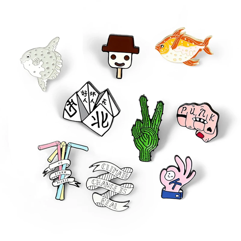 Детская игра эмалированная брошь OK кактус знак победы солома рыба бумага складной значок на лацкан мороженое 80-е 90-е собирать ювелирные изделия значки