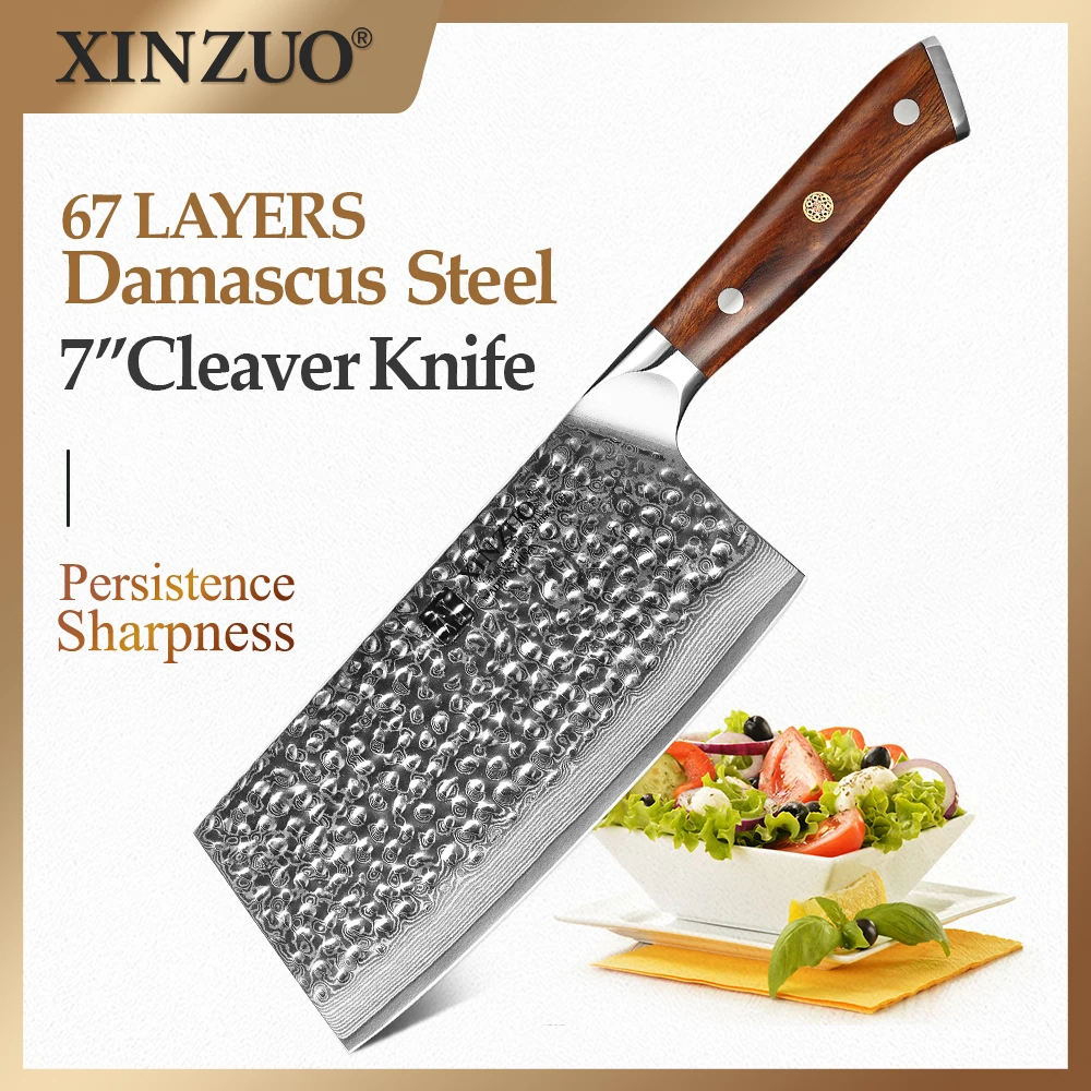 XINZUO 7 дюймов нож Кливер в китайском стиле VG10 Дамасская сталь к...