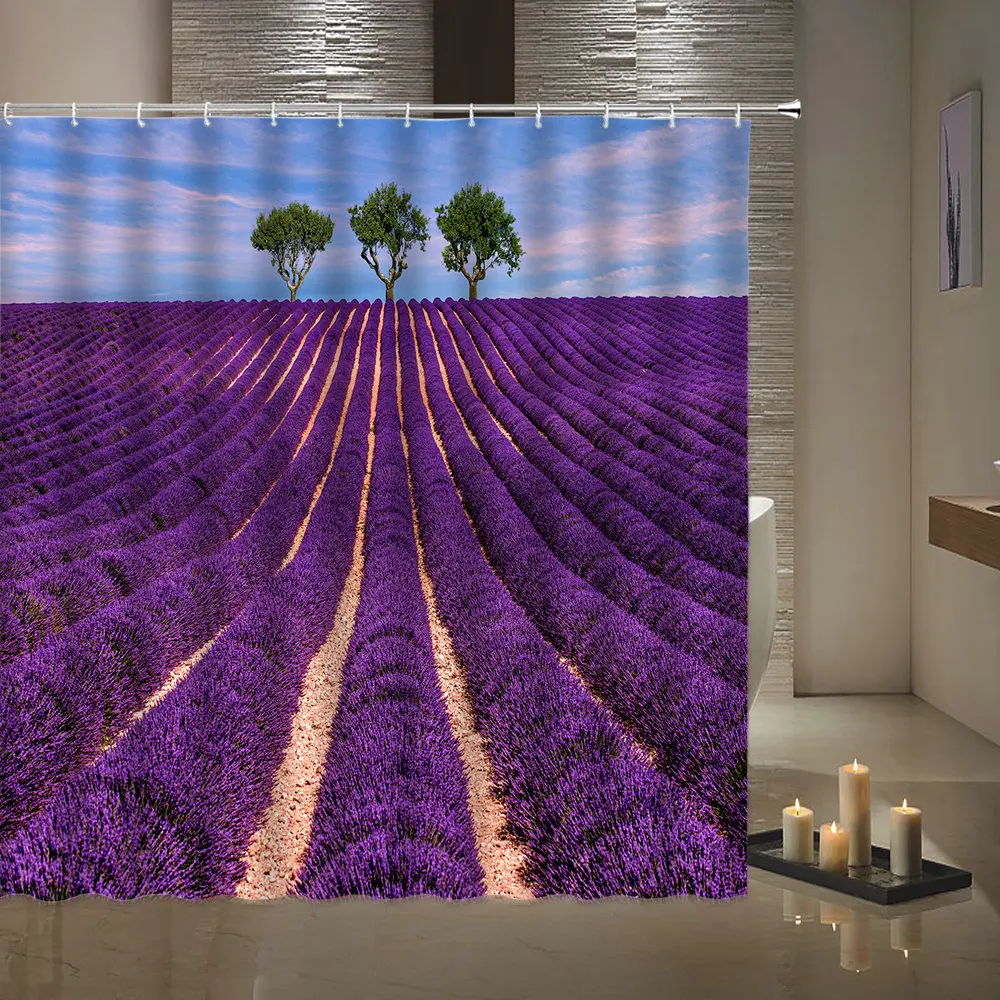Сад душ занавески подсолнухи Лаванда 3D печать Ванная комната Водонепроницаемый полиэстер ткань занавеска перегородка экран с крючком