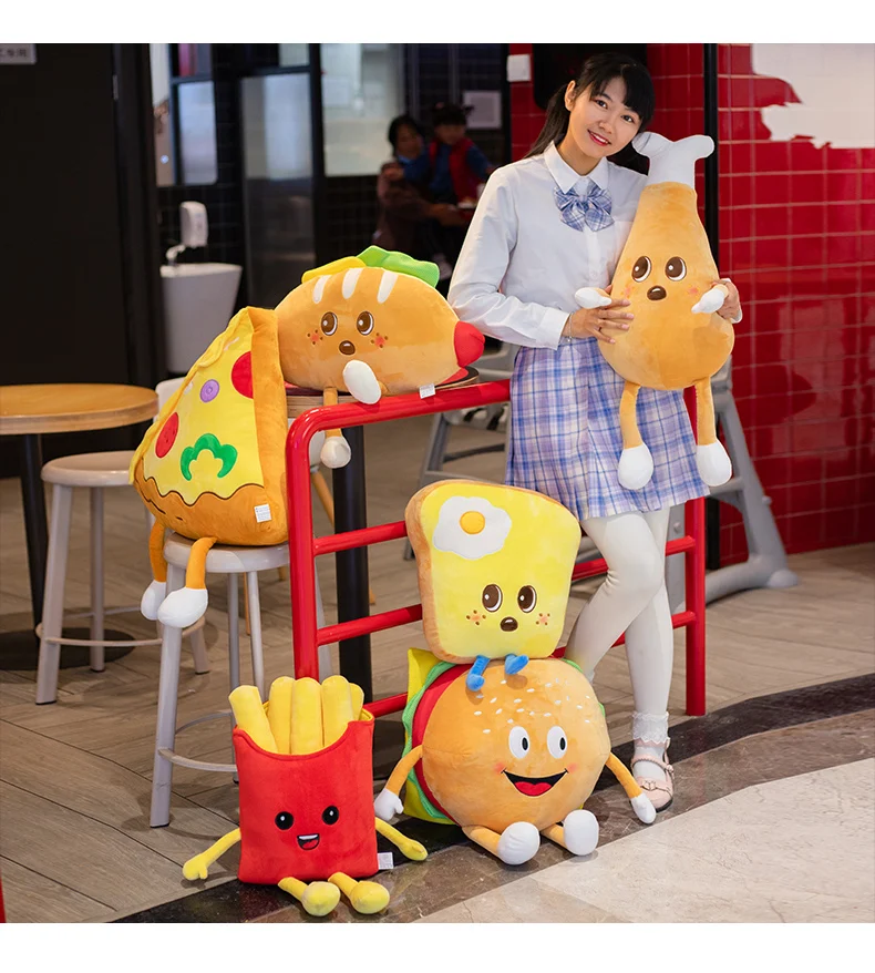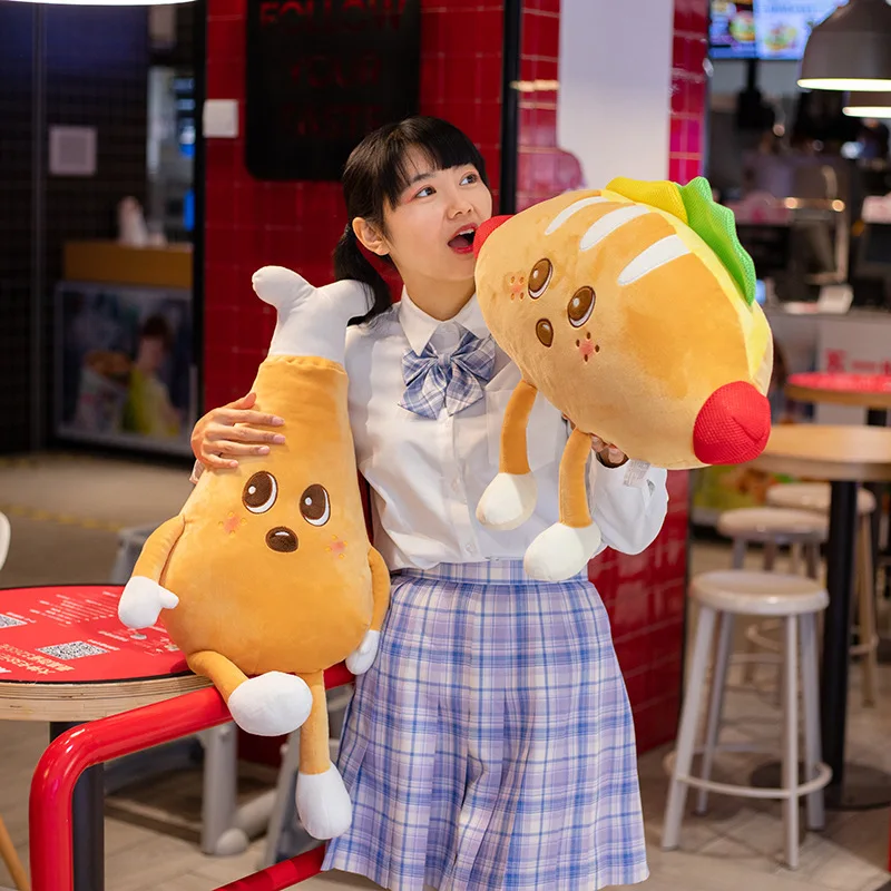 Милая мультяшная плюшевая игрушка фаст-фуд, мягкая игрушка, хот-дог, попкорн, куриные ножки, чипсы для пиццы, Детская забавная подушка для декора комнаты