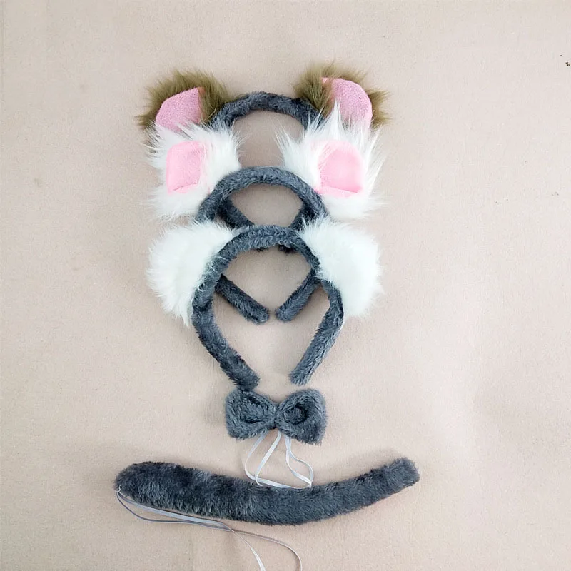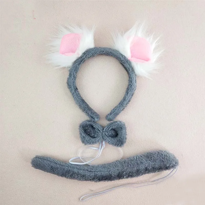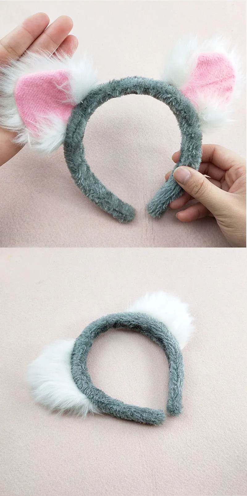 Повязка на голову с медведем коала для вечеринки для взрослых и детей, набор с бантом и хвостом, подарки, аксессуары, плюшевые повязки для волос с животными для косплея, день рождения