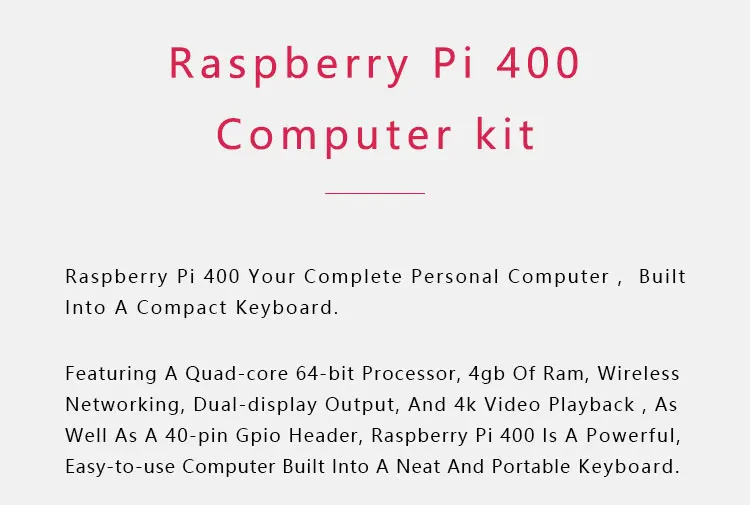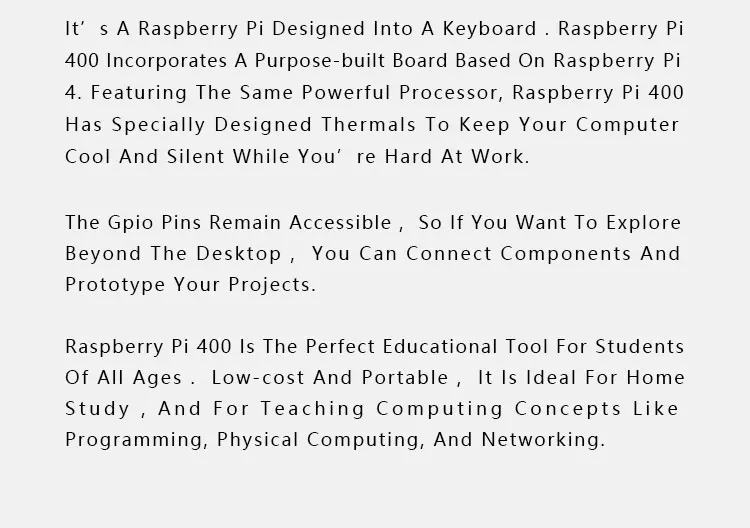 Raspberry Pi 400, персональный четырехъядерный процессор компьютерный набор, 64 бита, 4 Гб ОЗУ, Wi-Fi, выход на два дисплея для 4K