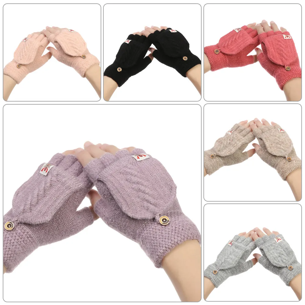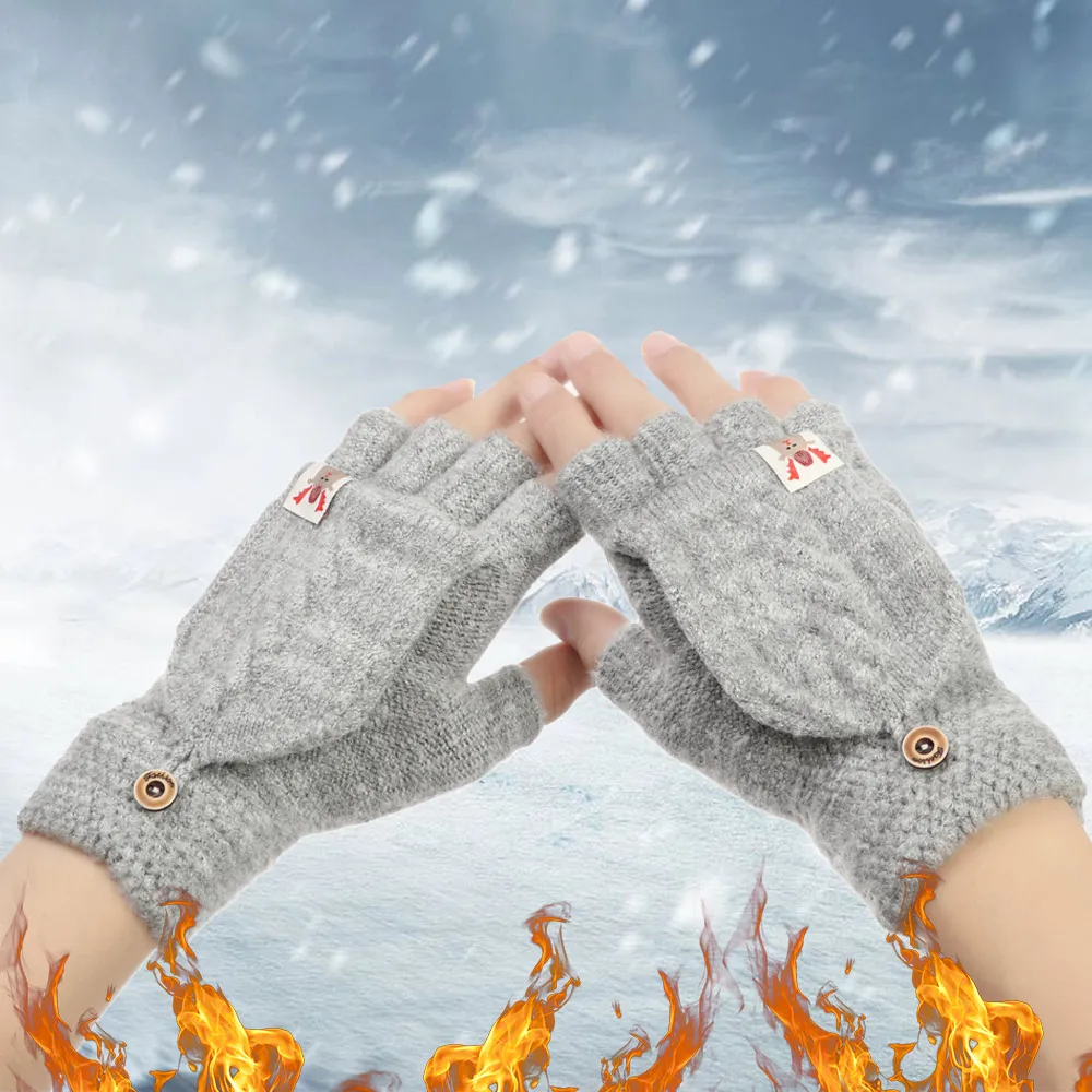 Зимние теплые вязаные перчатки 2 в 1 для женщин и мужчин, плотные мягкие эластичные перчатки с открытыми пальцами и Полузакрытыми пальцами, 2020