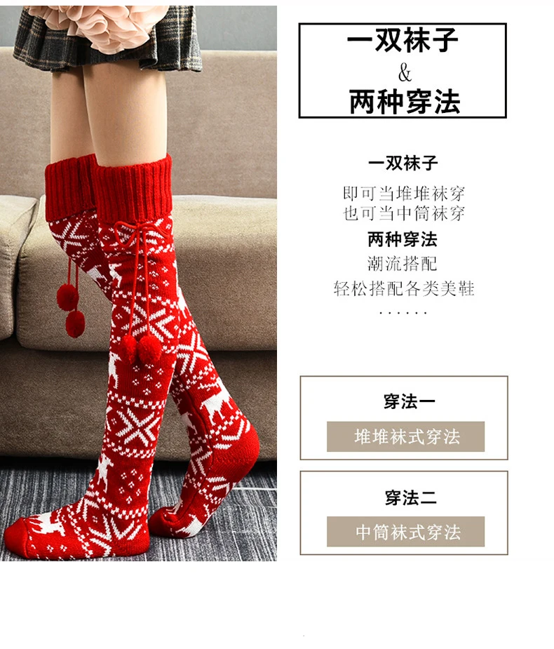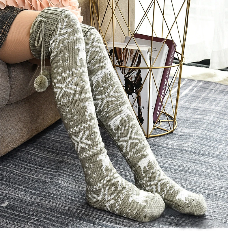 Рождественские Женские плотные вязаные чулки для девочек, женские зимние Хлопковые вязаные длинные носки до бедра, Гольфы выше колена, гетры