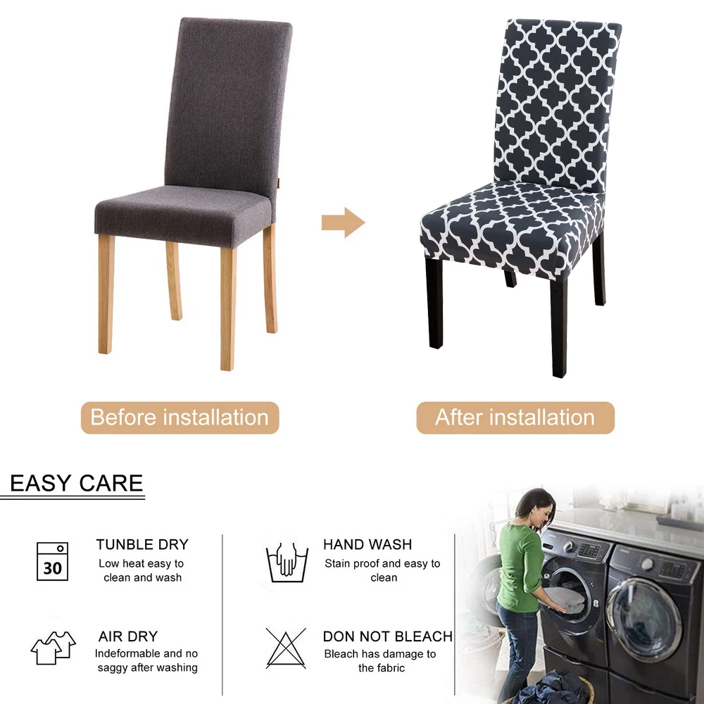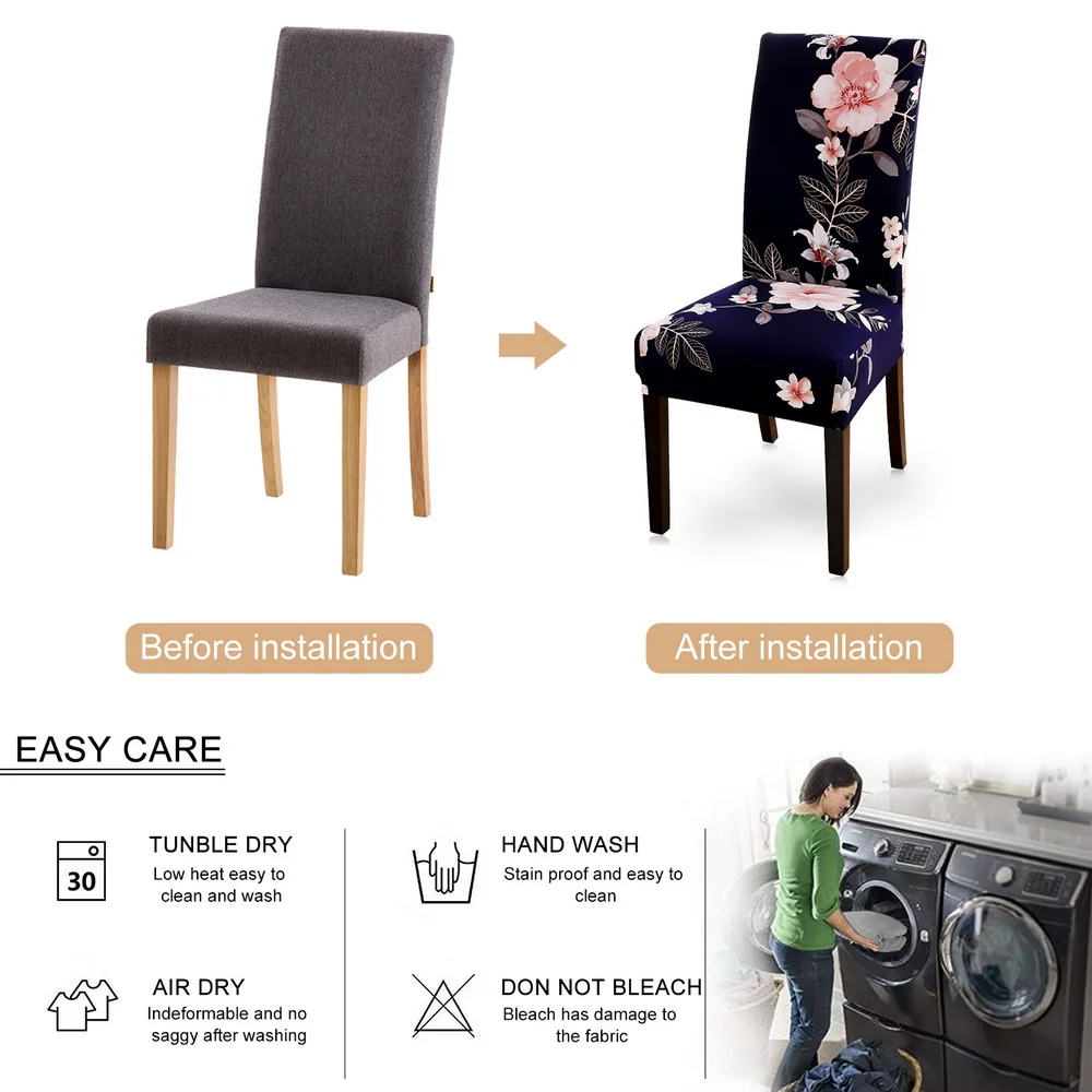 Тип: чехлы для обеденных стульевРазмер: Высота спинки: 45-60 смДлина и ширина сиденья: 40-50 смЦвет: разноцветныйМатериал: полиэстер + стрейч-спандексУпаковка: 1 шт. х чехлы для стульевОсобенности:Полиэстер спандекс. Мягкий удобный и устойчивый к морщинкамРастягивающийся материал, растягивающийся, быстро восстанавливается, надежно прилегает к пришитой эластичной кромке.Эти чехлы для стульев с растягивающейся подошвой подходят для большинства домашних обеденных стульевЛегко моющаяся и глажкаИспользуется для отеля, свадебного банкета, ужина, встречи, торжества, церемонии, украшения семейной столовой и т. д.