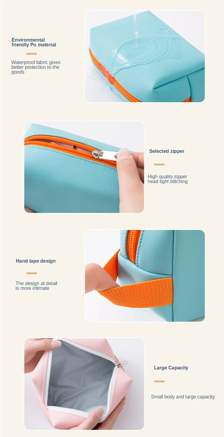 Поместите косметику и предметы для хранения, материал мягкий и удобный, яркий контрастный цвет делает часть более характерной