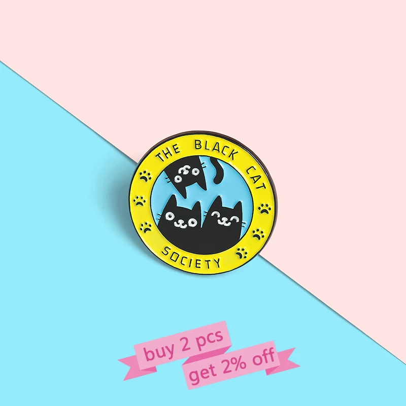 Эмалированная брошь в виде черного кота на заказ, брошь в виде смешного животного, для рубашки, сумки на лацкан, симпатичный значок, мультяшная бижутерия, подарок для друзей