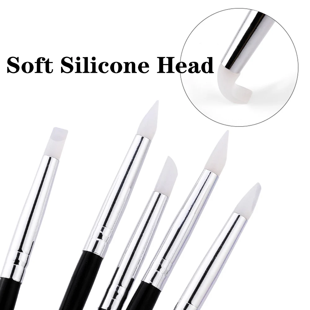 5 шт. силиконовых кейсов кисти для ногтей ручка для лака для ногтей, для рисования, ногти "сделай сам", дизайн деревянной ручкой кисть для ногтей маникюр Аксессуары для инструментов