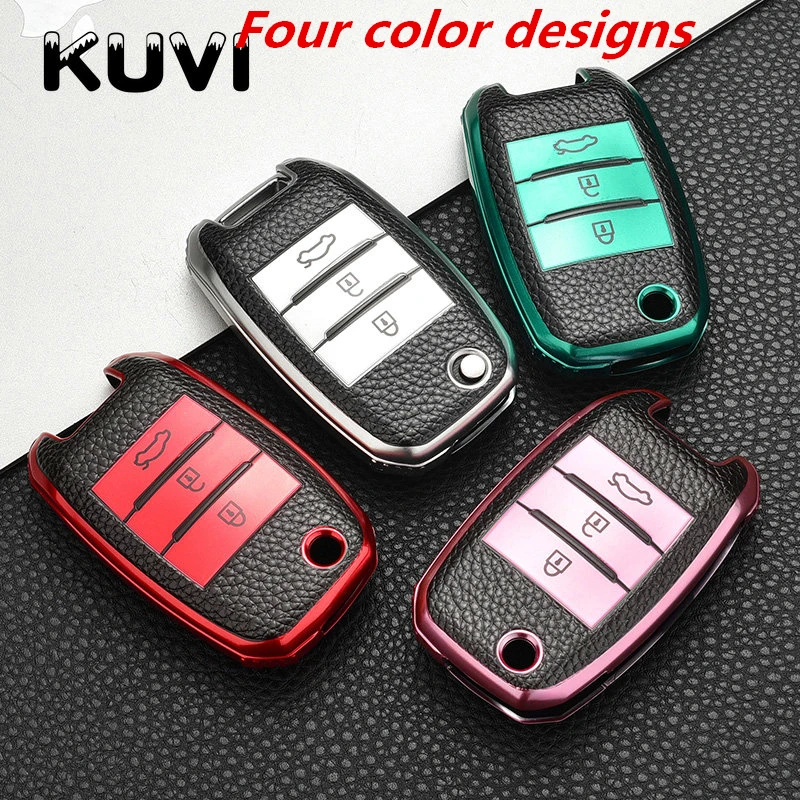 Кожаный складной чехол для автомобильных ключей, защитный чехол для KIA Sid Rio Soul Sportage Ceed Sorento CeratoK2 K3 K4 K5, пульт дистанционного управления, брелок