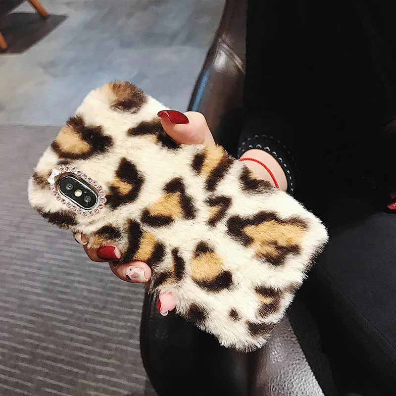 Милый Леопардовый плюшевый теплый меховой чехол для телефона Huawei...
