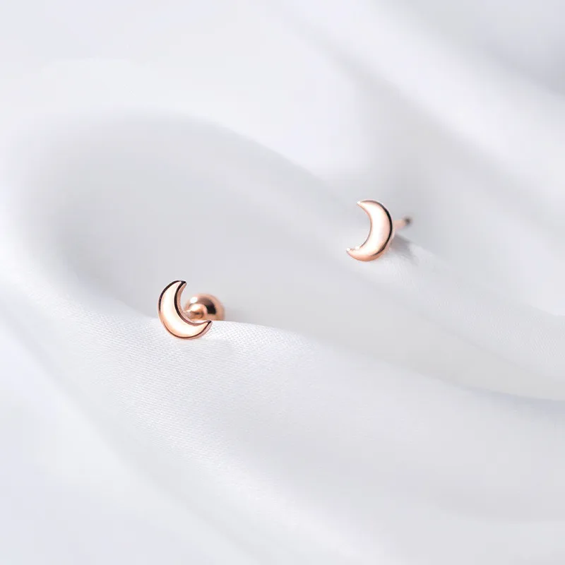 Женские серьги-гвоздики с бусинами в виде Луны, минималистичные мини-серьги из настоящего серебра 925 пробы, ювелирные аксессуары для студентов-подростков