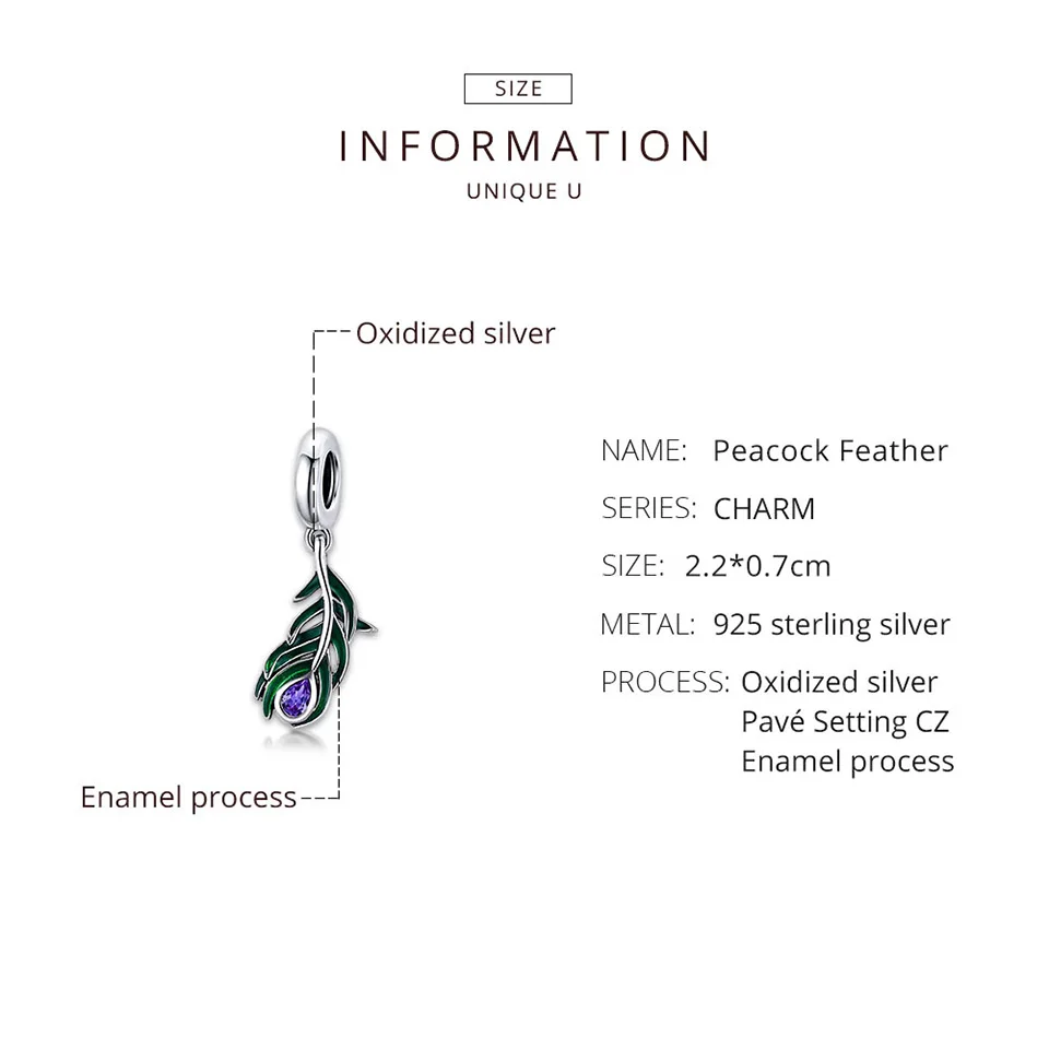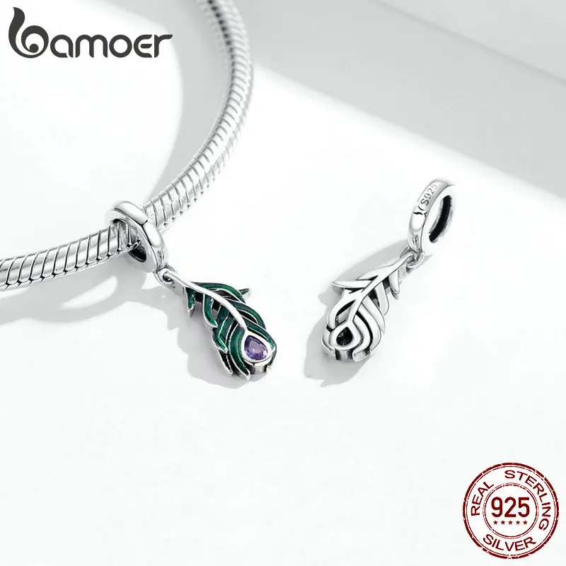 Оригинальный Женский браслет bamoer из серебра 925 пробы с перьями павлина, Ювелирное Украшение SCC1704