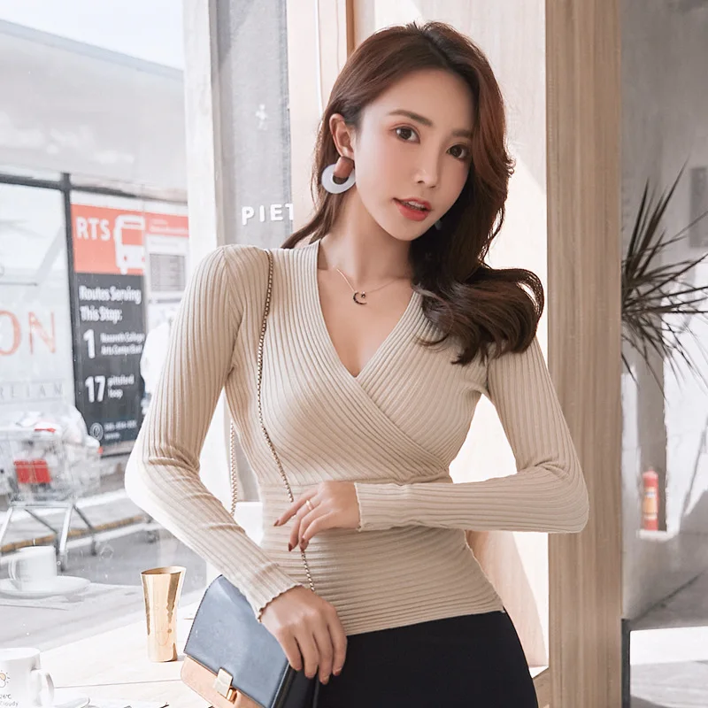 Корейский сексуальный свитер с глубоким v-образным вырезом Женский ...