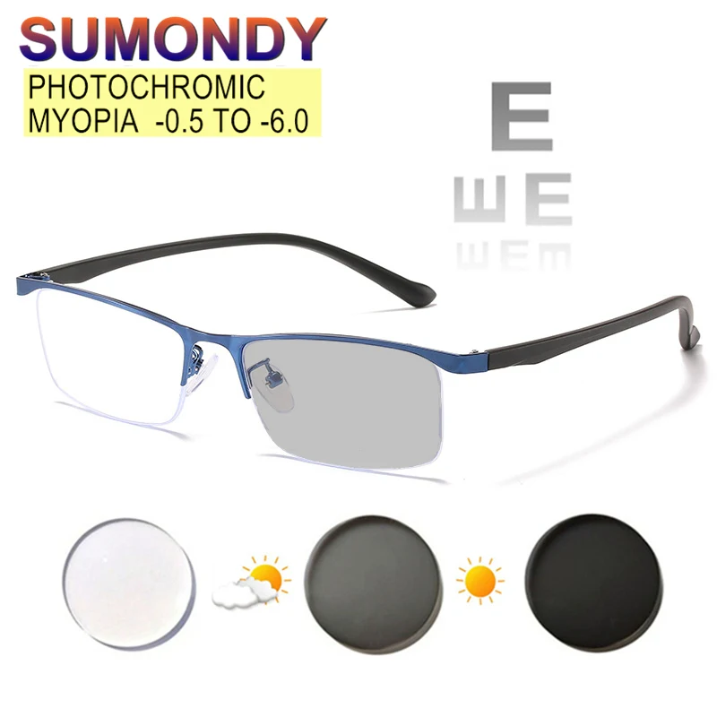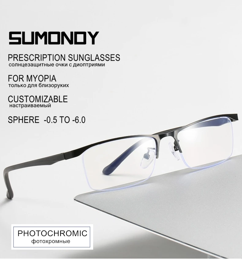 SUMONDY фотохромные Рецептурные очки для близоруких-0,5 до-6,0 Для женщин мужчин по индивидуальному заказу с оправой из сплава близорукие очки UF125