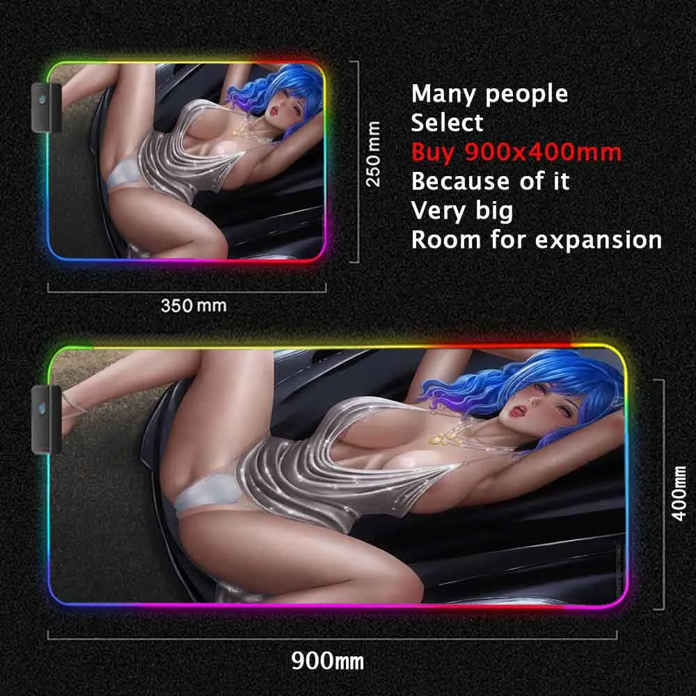Сексуальные большие девочки RGB аниме Мышь игровой коврик набор све...
