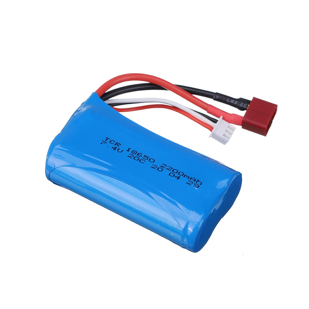 Аккумулятор lipo 7,4 в 2S 2200 мАч T-образный разъем, аккумулятор 18650 для WL912 Wltoys 10428 12428 12423 Q46, запасные аксессуары для радиоуправляемых автомобилей, Аккумулятор 7,4 в