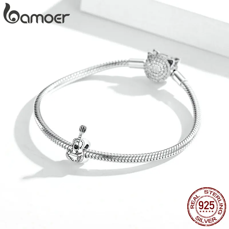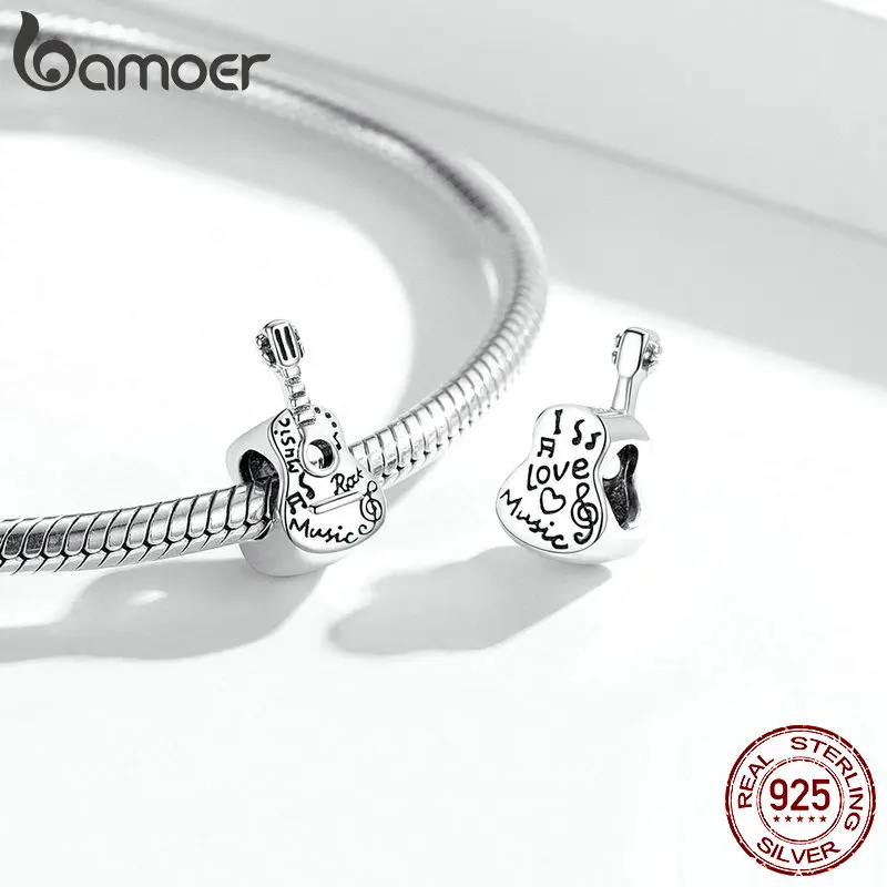 Bamoer 925 пробы серебряный Ретро Шарм для оригинального браслета и браслета винтажные простые Подвески в виде гитар ювелирные изделия DIY браслет SCC1708